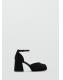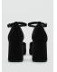 Tejido de terciopelo. Tacón ancho. Pulsera en el tobillo. Punta redonda. Cierre de hebilla. El tacón mide 8 cm. Colección fiesta y eventos. Party Collection