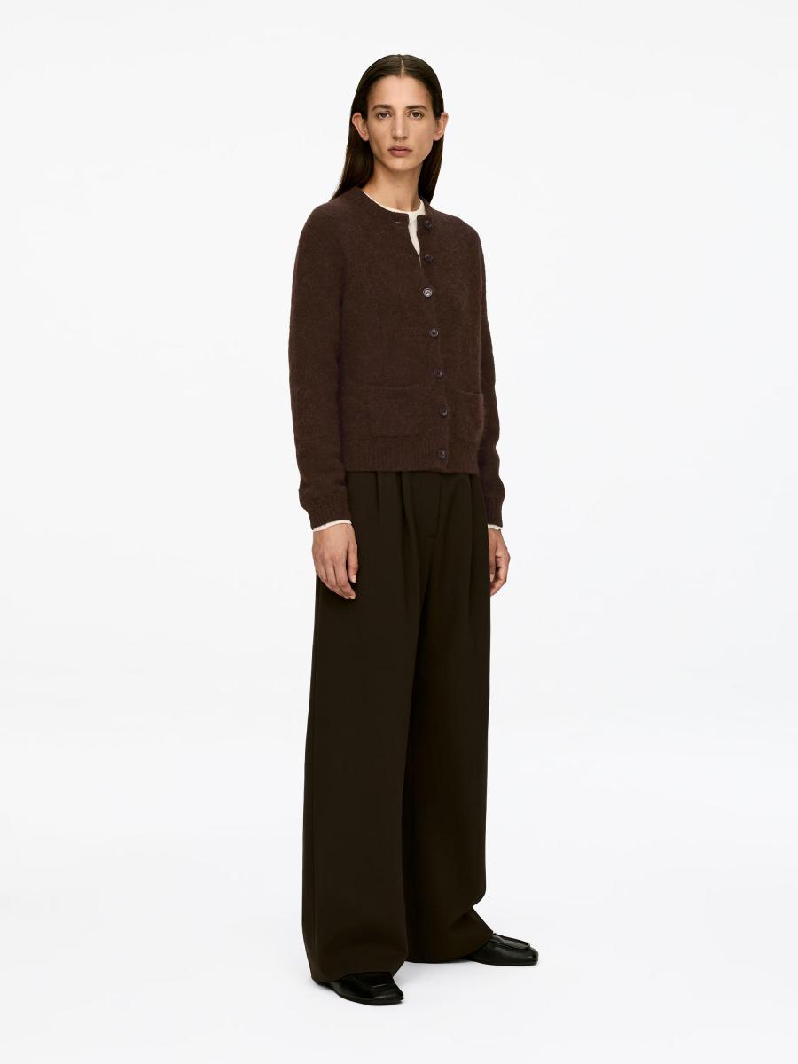 Cardigan knitted from a soft alpaca and wool blend, featuring button fastening and a regular fit. This style contains 31% RAS Alpaca and 31% RWS wool (TE-00047206). Products certified to the Responsible Wool Standard (RWS) and the Responsible Alpaca Standard (RAS) contain wool and alpaca fiber from farms independently certified to animal welfare and land management requirements.ARKET/Women's clothes/Women's knitwear/Women's cardigans