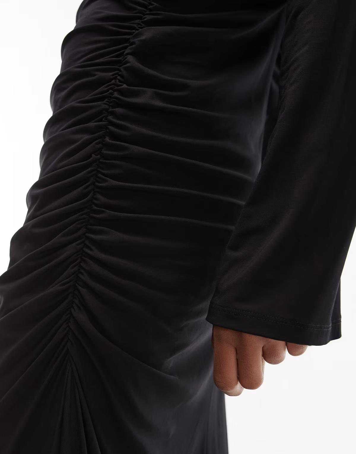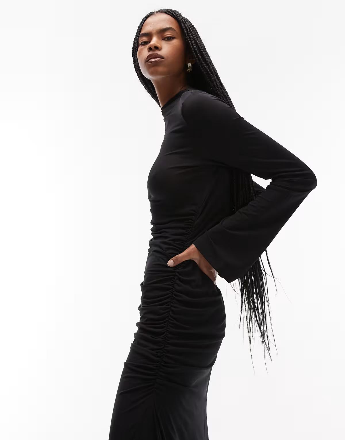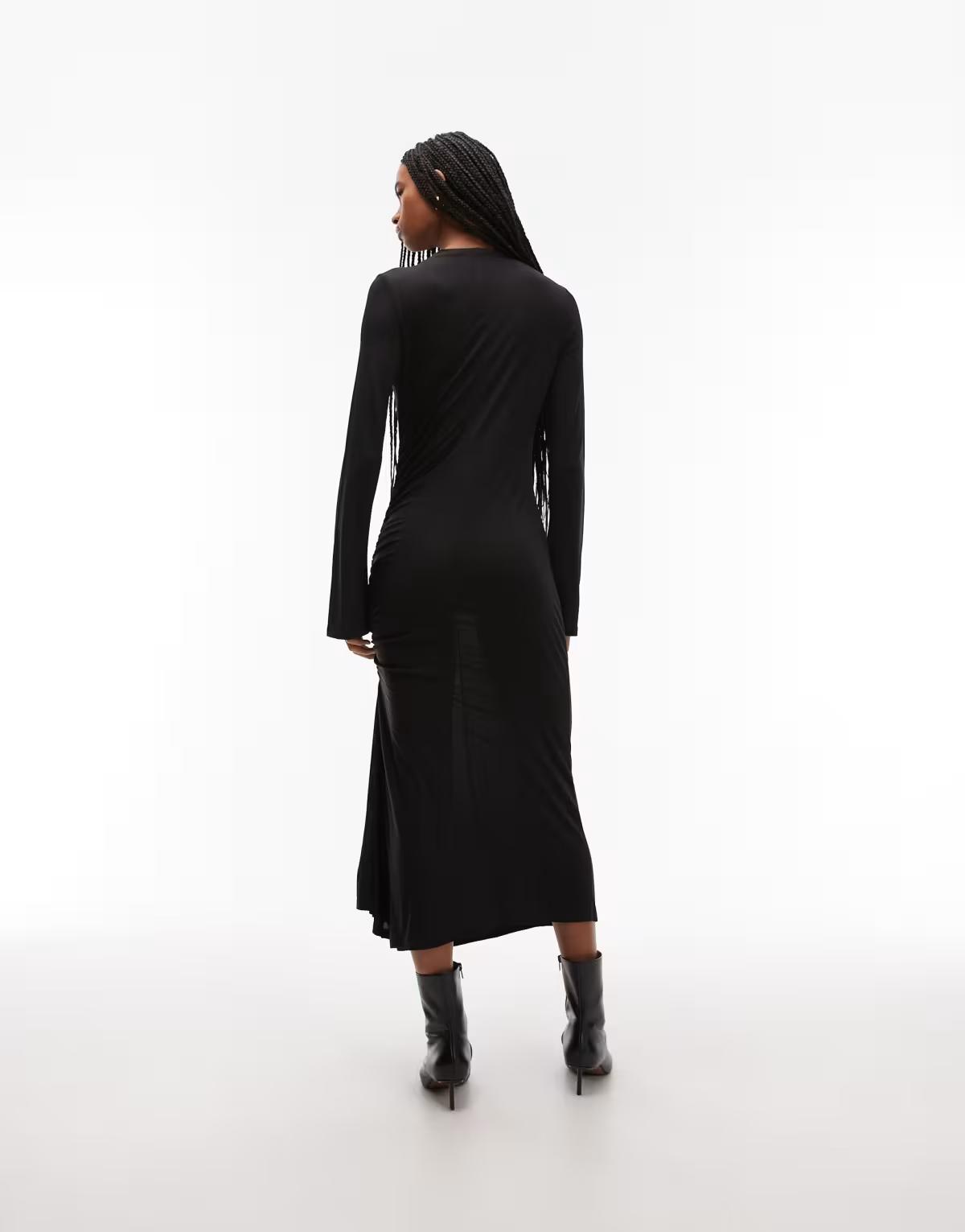 & Other Stories high neck long sleeve soft twisted midi dress in black