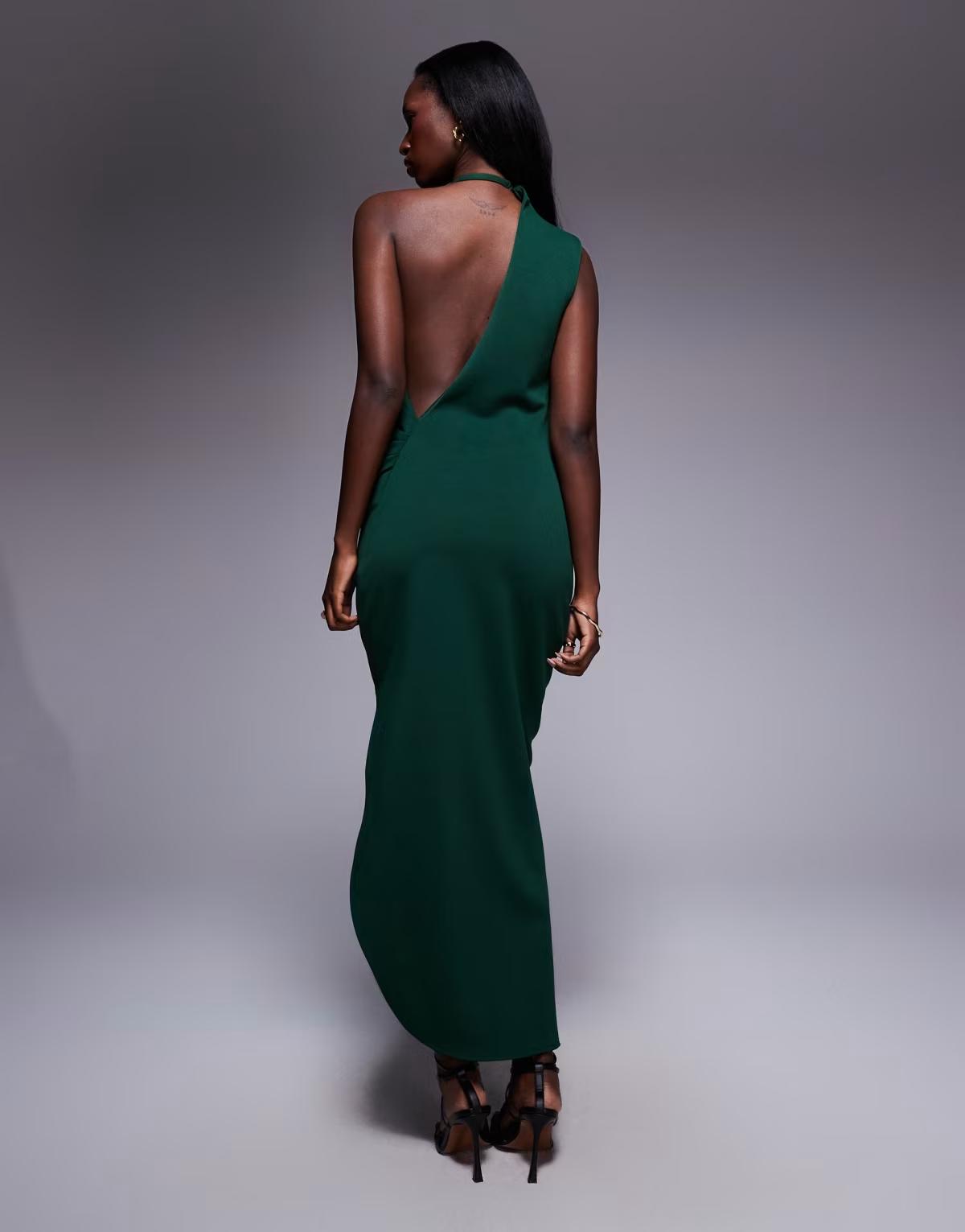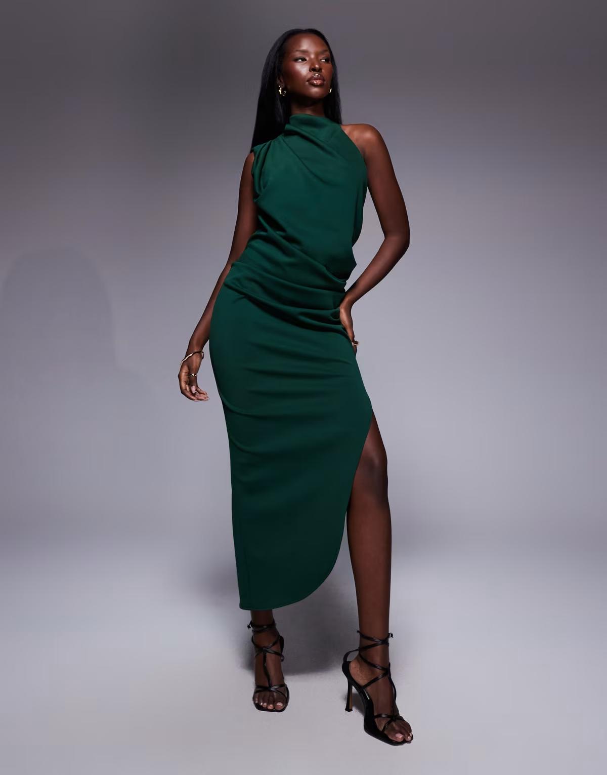 ASOS DESIGN scuba one shoulder midi dress in dark green