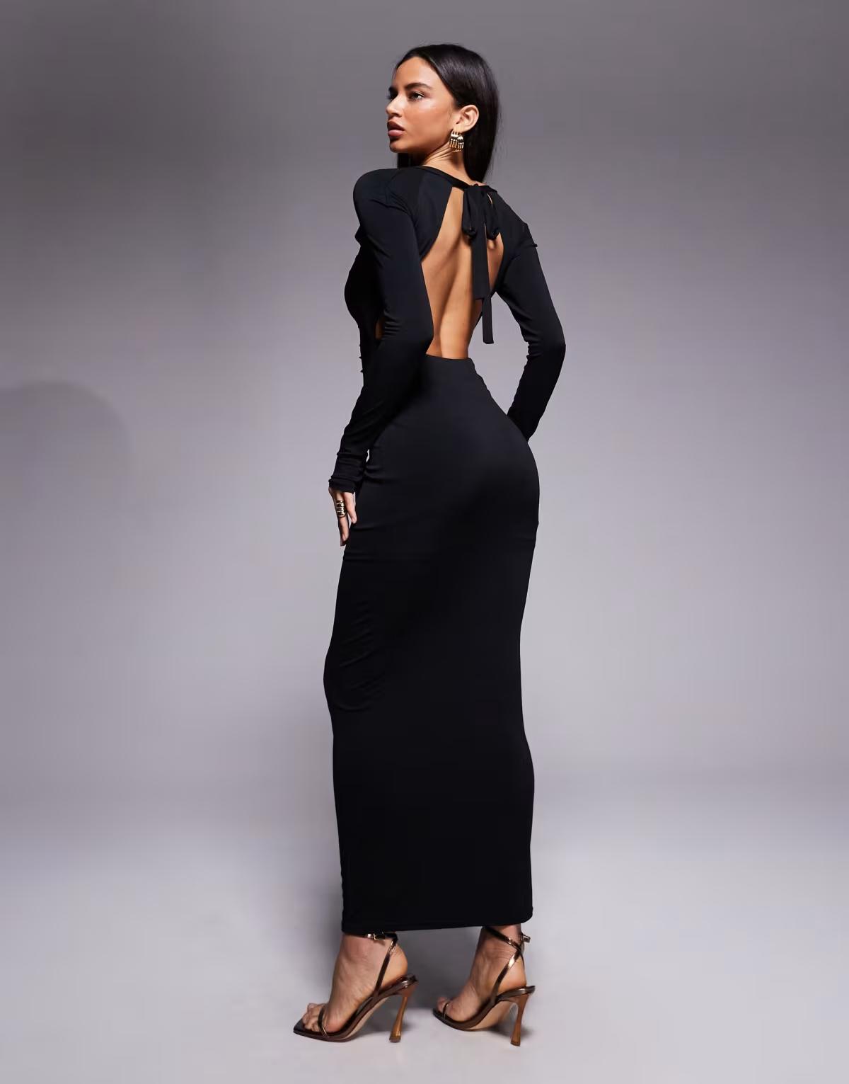 TFNC long sleeve shoulder cut out open back maxi dress in black
