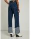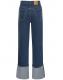 宽折边直筒牛仔裤 - 蓝色 - 女士 - Bite Studios - 正面纽扣和隐藏式拉链开合.