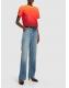 镂空低腰阔腿牛仔裤 - 蓝色 - 女士 - Gauchere - 正面纽扣和隐藏式拉链开合.