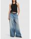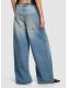 低腰阔腿牛仔裤 - 蓝色 - 女士 - Gauchere - 正面纽扣和隐藏式拉链开合.