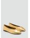 100% piel caprino. Flat. Punta redonda. Detalle de lazo. Sin cierre. Forro interior