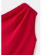 Diseño midi. Diseño evasé. Cuello asimétrico. Sin mangas. Detalle fruncido en el hombro. Cierre de cremallera lateral. Disponible Plus
