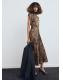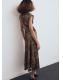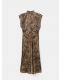 Tejido satinado. Diseño midi. Diseño entallado. Diseño de leopardo. Cuello alto. Manga corta. Fruncidos laterales. Cierre de botón en la parte posterior