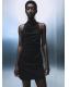 Diseño corto. Diseño entallado. Cuello halter. Espalda abierta. Fruncido lateral. Tira ajustable en la parte posterior. Cierre de botones en el cuello. Forro interior