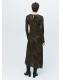 Tejido satinado. Estampado animal print. Diseño midi. Diseño recto. Cuello barco. Manga larga. Cierre de botón en la parte posterior. Forro interior