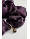 This modern scrunchie is crafted from lustrous mulberry silk in a rich plum hue and is punctuated by a semi-precious tiger's eye charm. Tie it around a braid or ponytail.\u0026nbsp;Brass is a versatile material that can be recycled numerous times without losing any of its properties\u0026nbsp;Shell: 100% Mulberry silk. Charm: 50% Recycled brass, 50% Semi-precious stone. Excluding trims