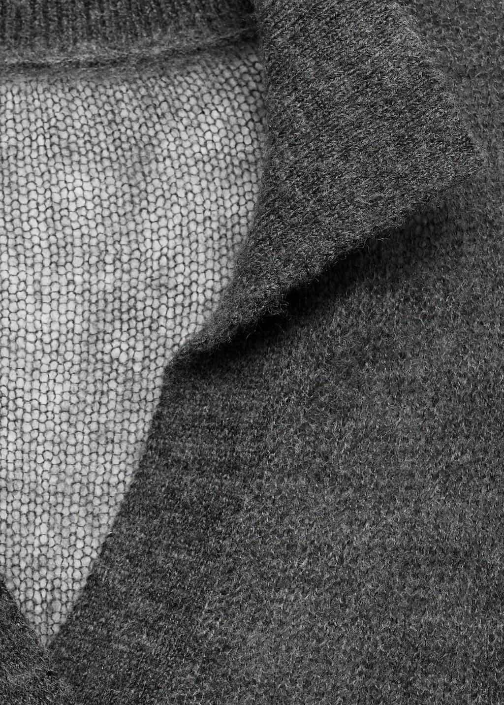 Tejido de punto medio. Diseño semitransparente. Diseño recto. Cuello camisero. Manga larga. Sin cierre
