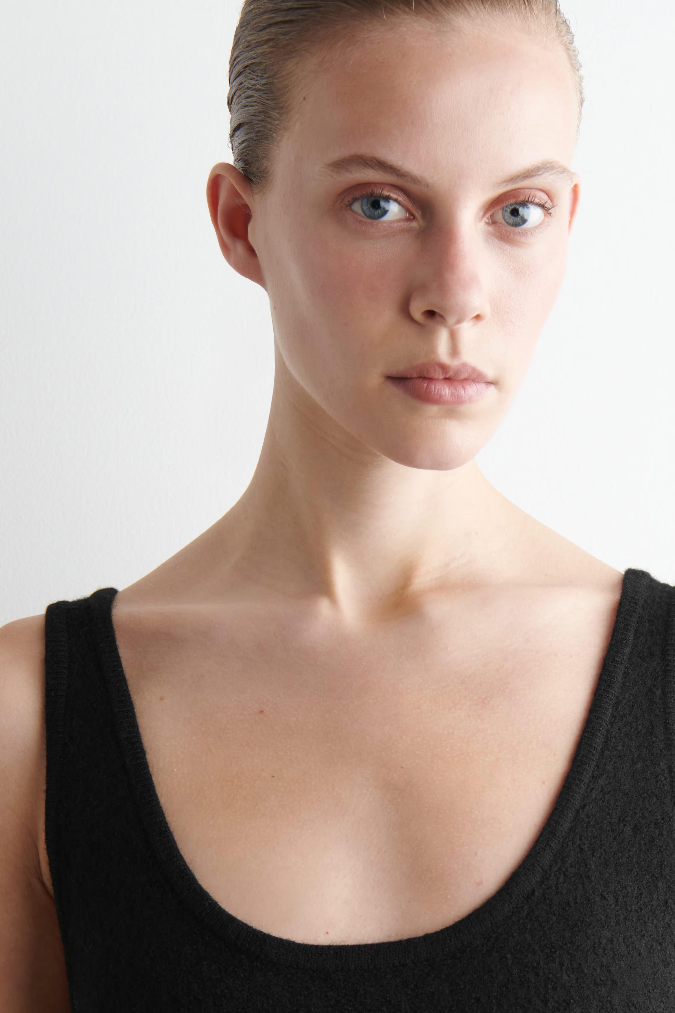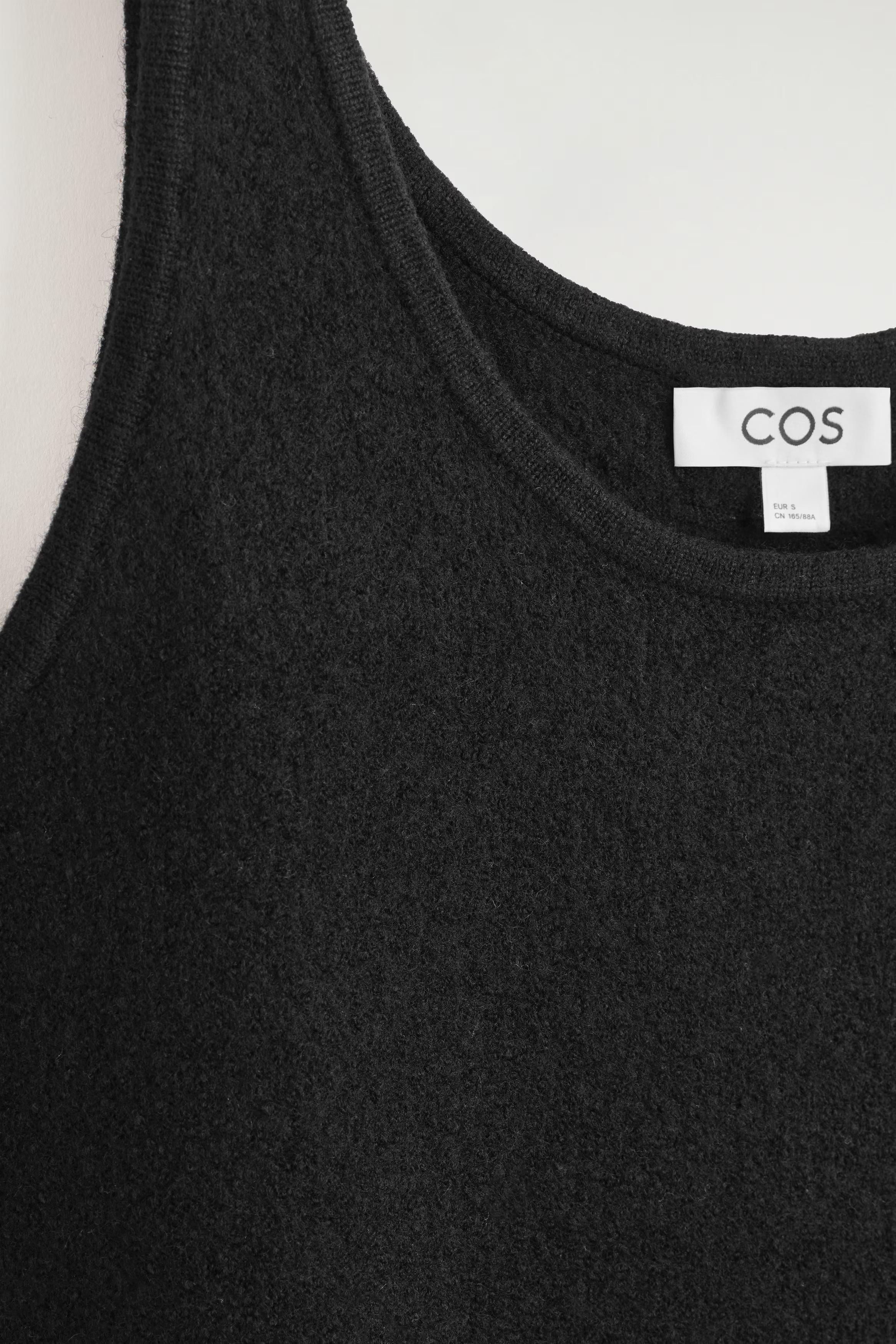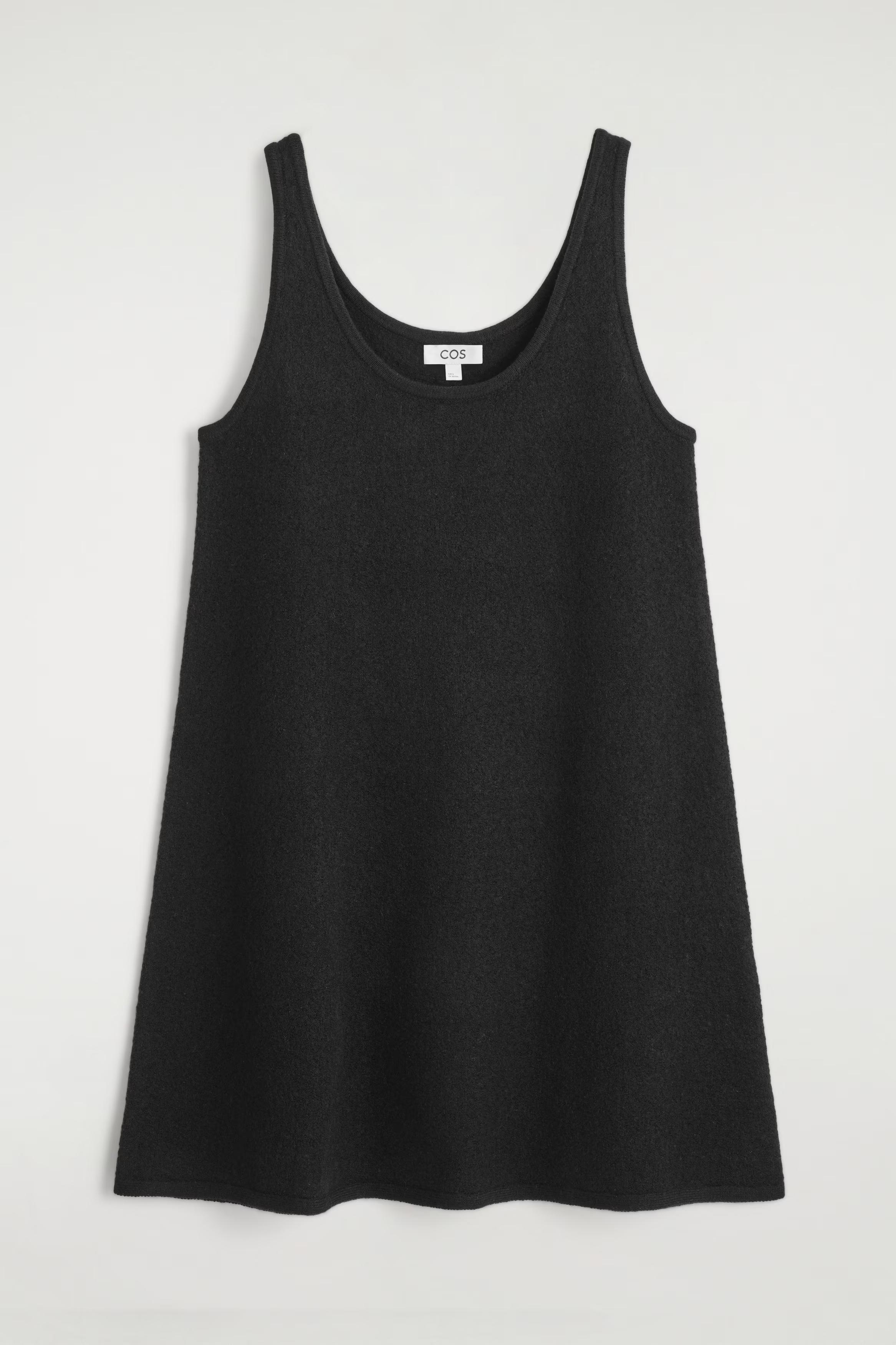 Inspired by '60s silhouettes, this mini shift dress is crafted from merino wool that's boiled for a textural finish. It's cut in an A-line shape and features a scooped neckline with neat tubular edges. Style it over trousers for a modern take.\u0026nbsp;Regular fitThis product contains Responsible Wool Standard TE-00047206 (RWS) wool fibre from farms certified to animal welfare and land-management requirements\u0026nbsp;Shell: 100% Merino wool. Excluding trims / Dry clean\u0026nbsp;Back length of size S is 85cm / Model wears a size S