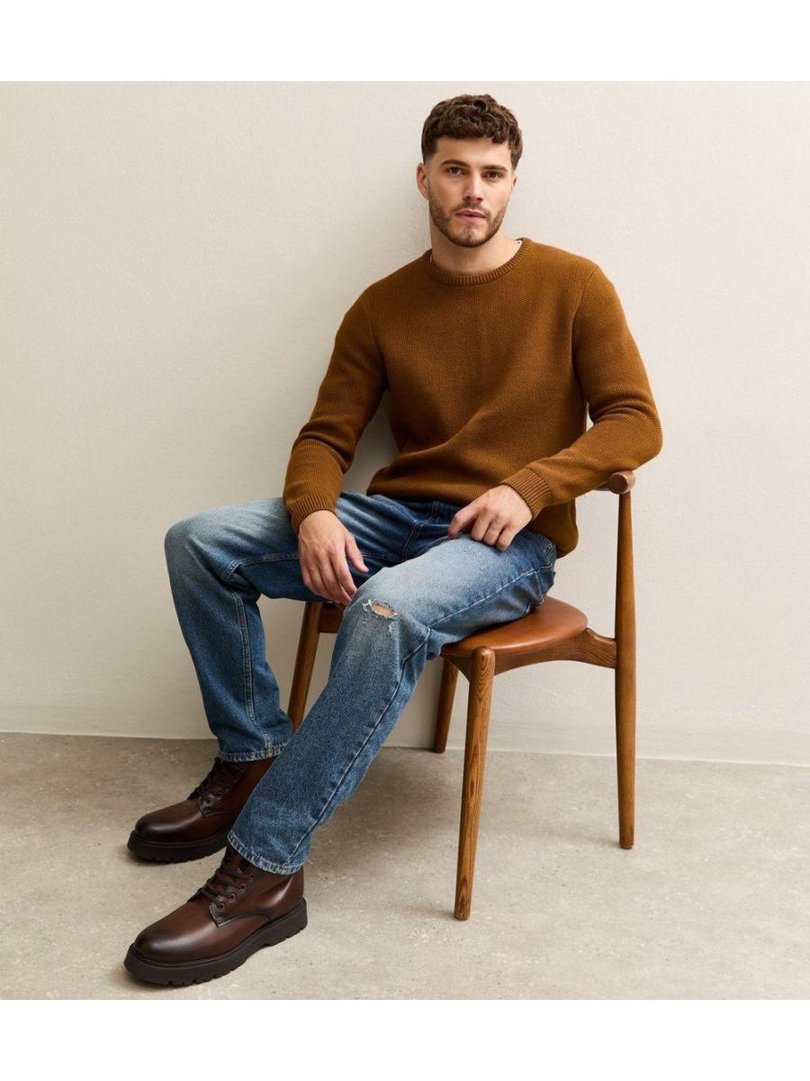 Brown Premium Heavyweight Cotton Crew Neck Jumper