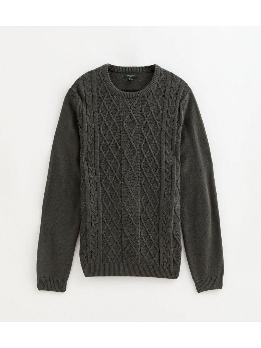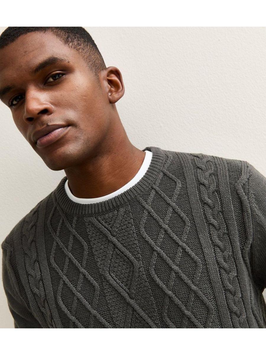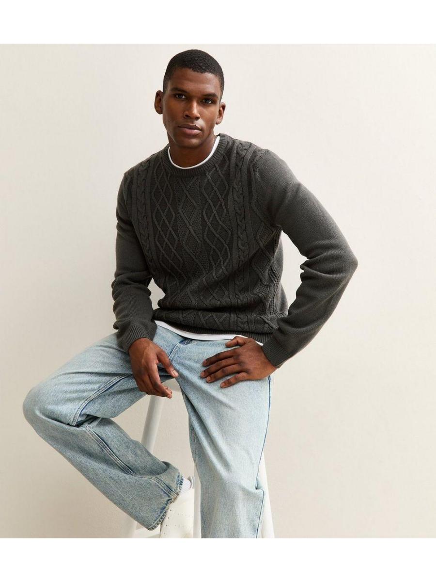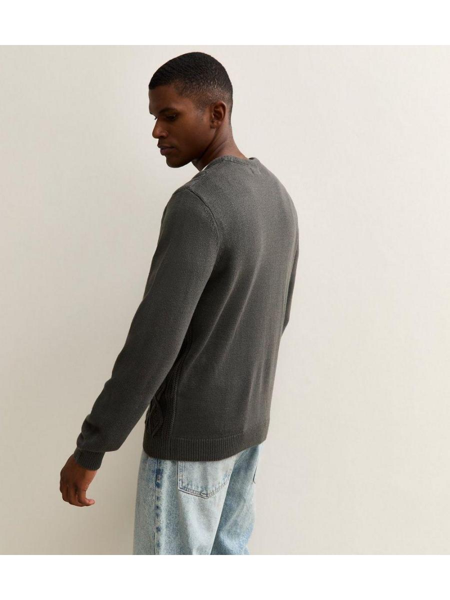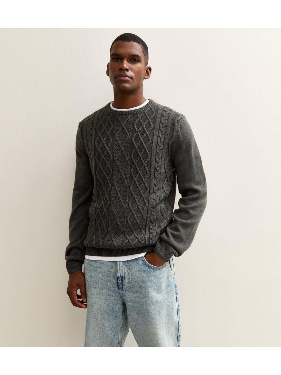 Grey Relaxed Cable Knit Long Sleeve Jumper