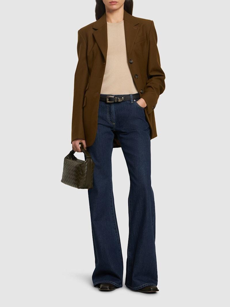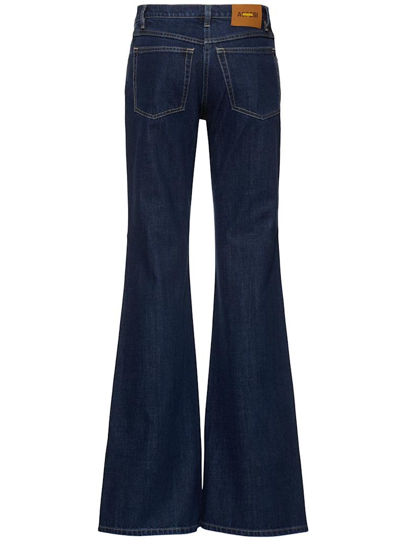 棉质喇叭牛仔裤 - 深蓝色 - 女士 - ASPESI - 正面纽扣和隐藏式拉链开合.