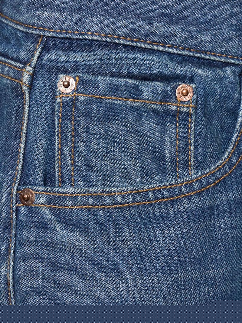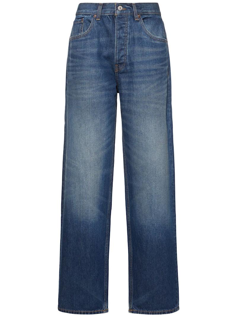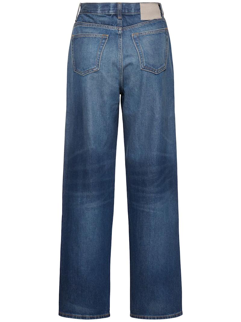 低腰宽松牛仔裤 - 蓝色 - 女士 - Aya Muse - 正面纽扣开合.