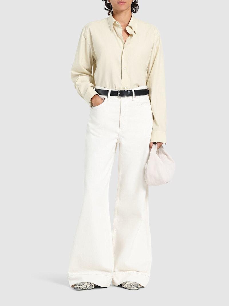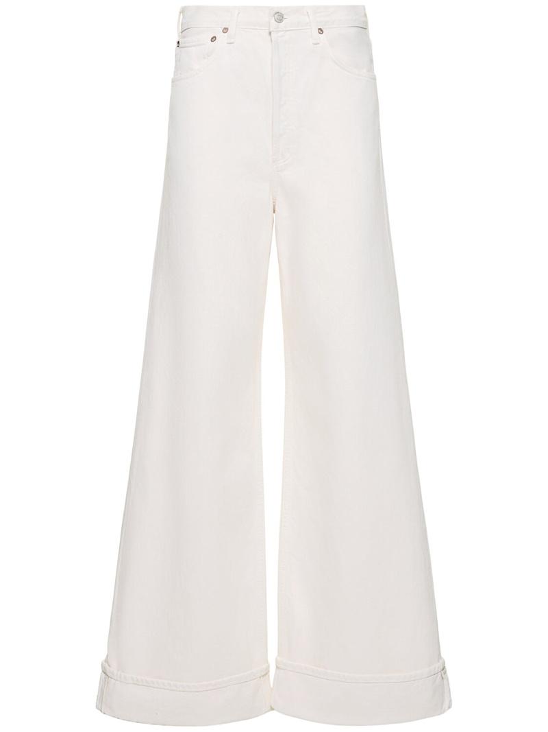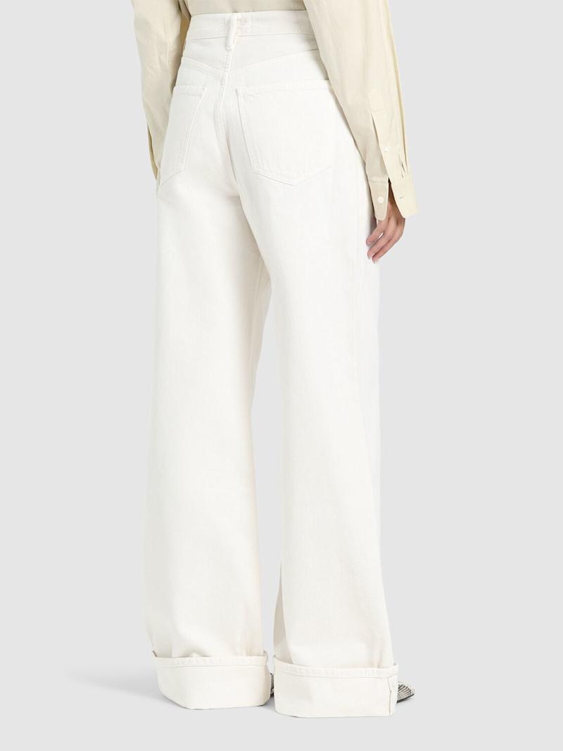 Dame高腰阔腿牛仔裤 - 白色 - 女士 - Agolde - 正面纽扣开合.