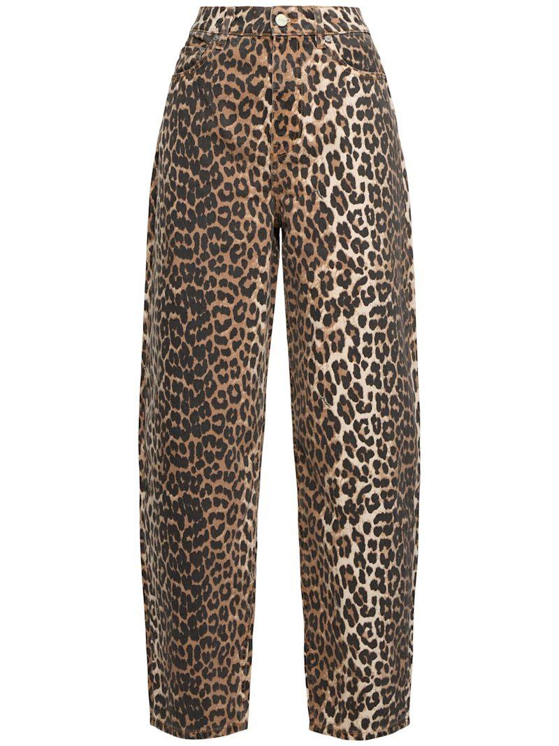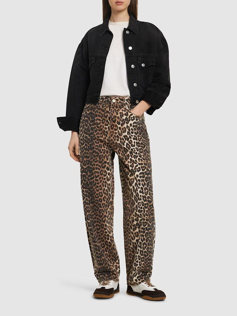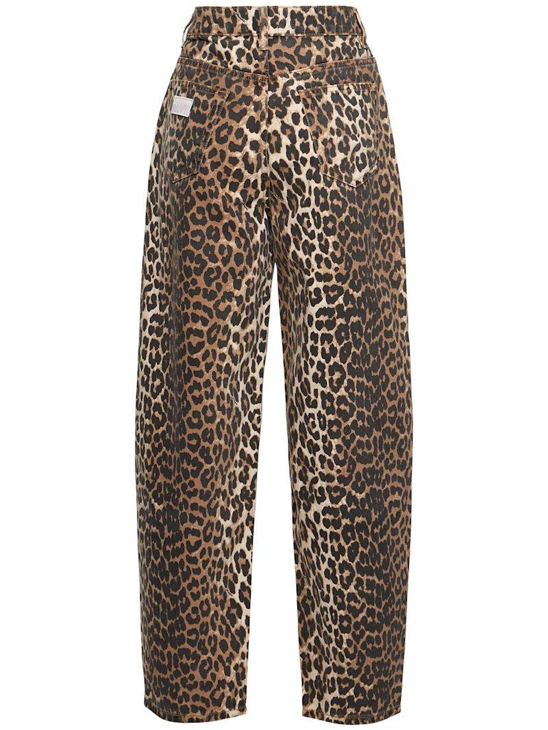 印花牛仔裤 - 棕色/多色 - 女士 - GANNI - 正面纽扣和隐藏式拉链开合.