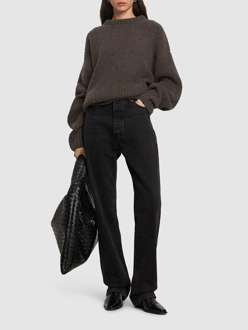 低腰锥形牛仔裤 - 黑色 - 女士 - Aya Muse - 正面纽扣开合.
