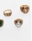 Reclaimed Vintage unisex 4 grunge ring pack with faux stones in gold