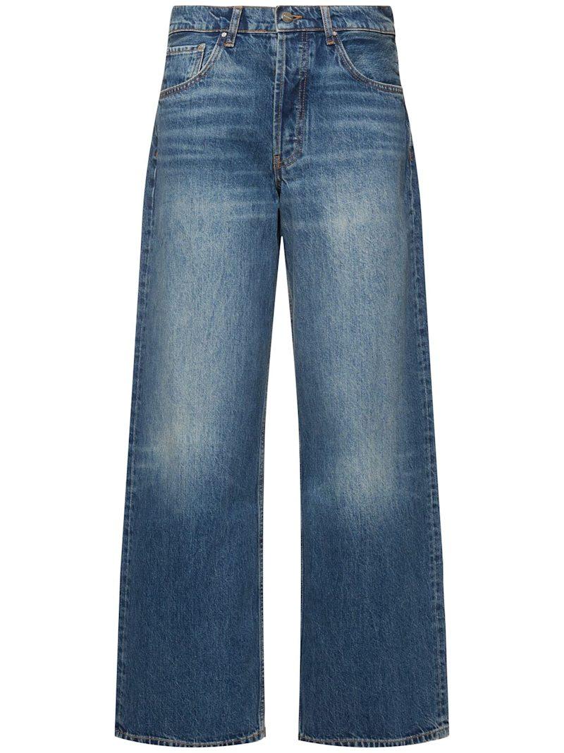 Manon中腰男友版型牛仔裤 - 蓝色 - 女士 - 正面纽扣开合.