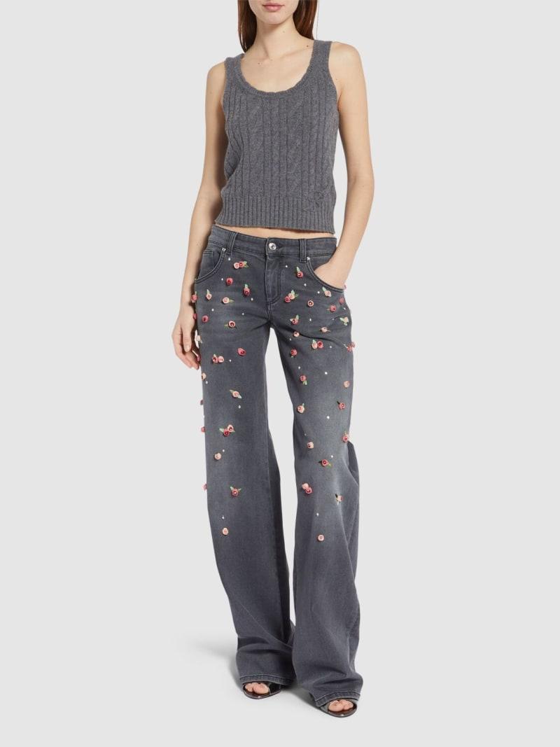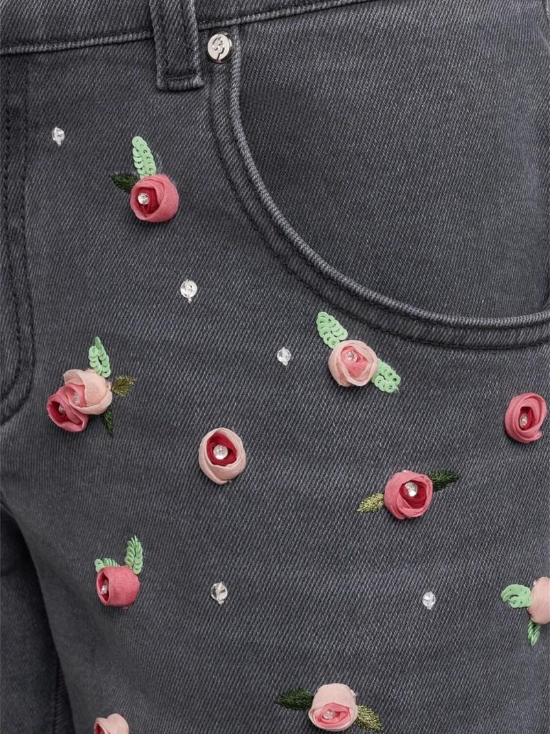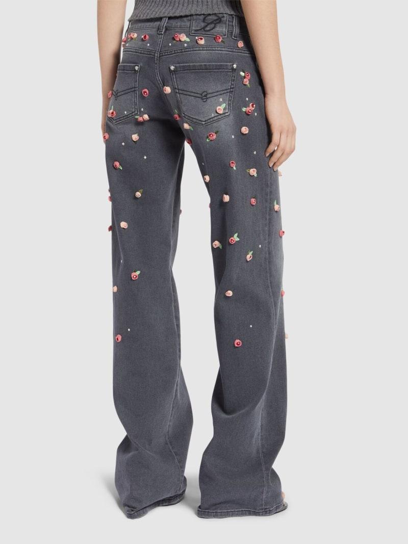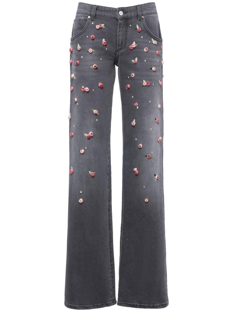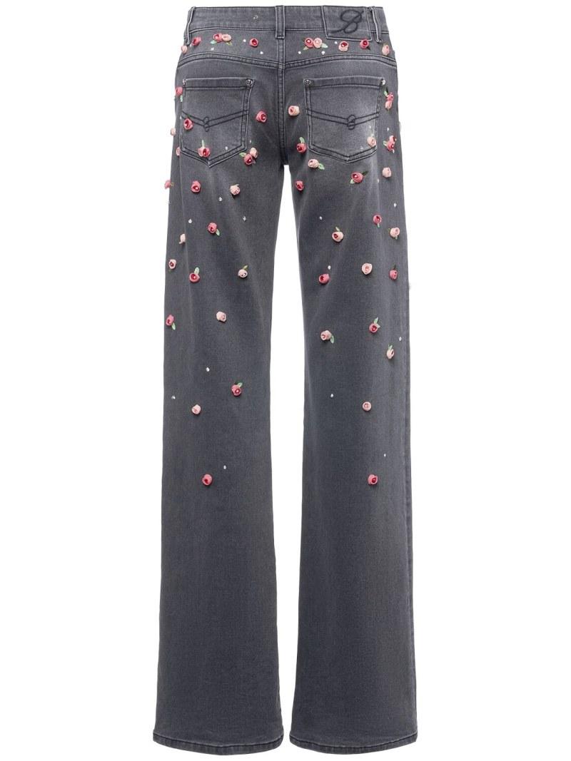 刺绣直筒牛仔裤 - 灰色 - 女士 - Blumarine - 正面纽扣和隐藏式拉链开合.