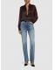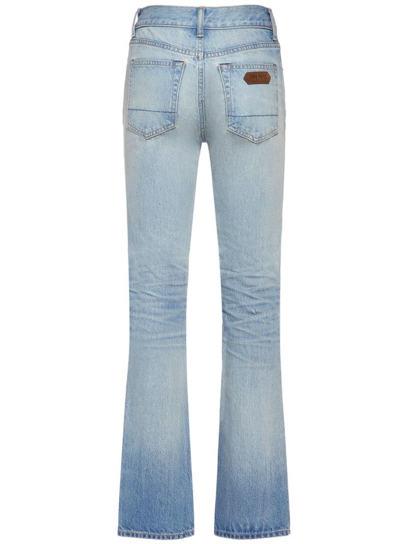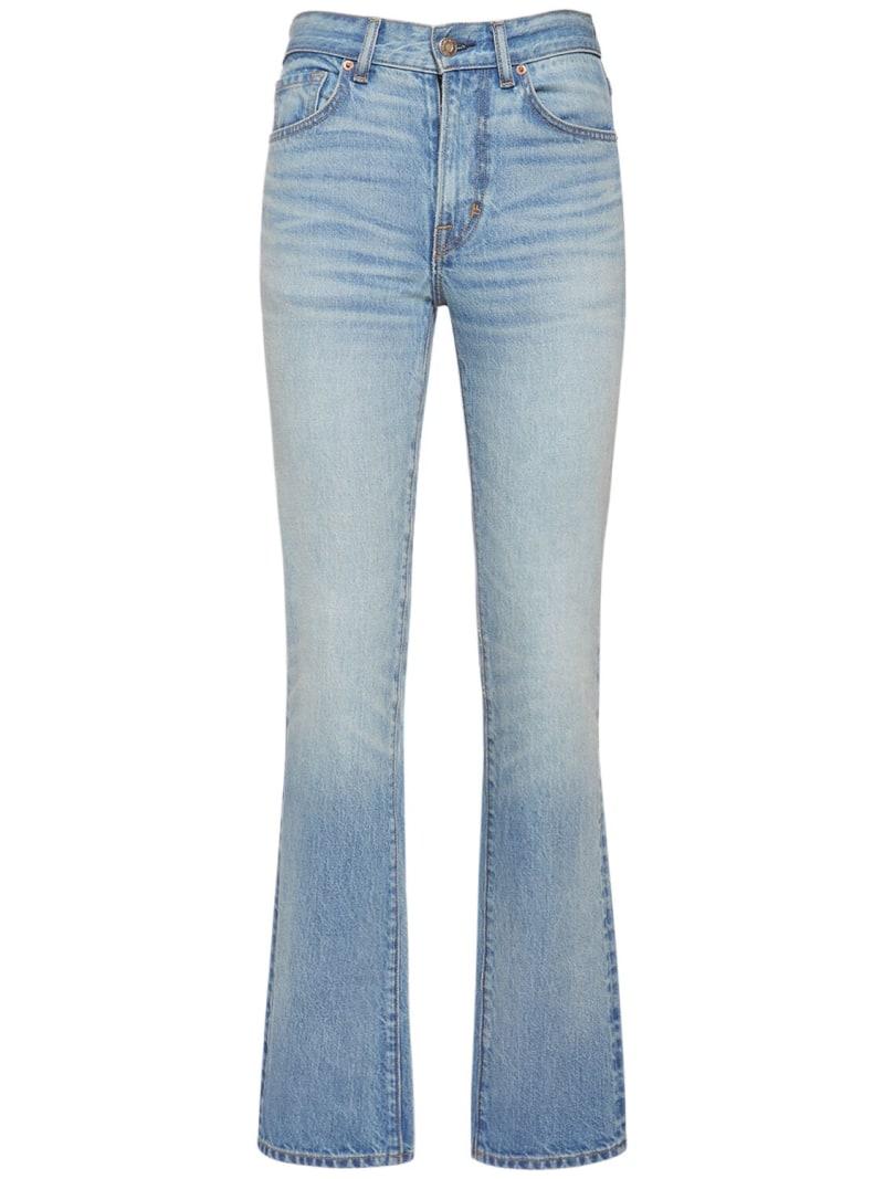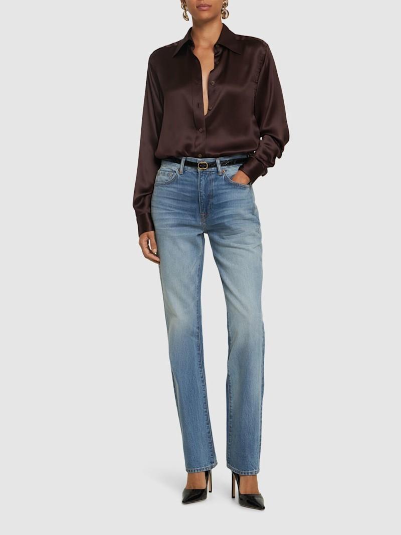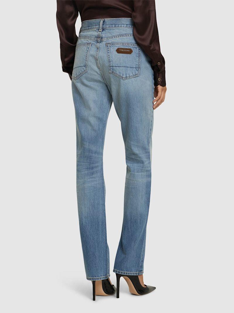 高腰直筒牛仔裤 - 浅蓝色 - 女士 - Tom Ford - 正面纽扣和隐藏式拉链开合.