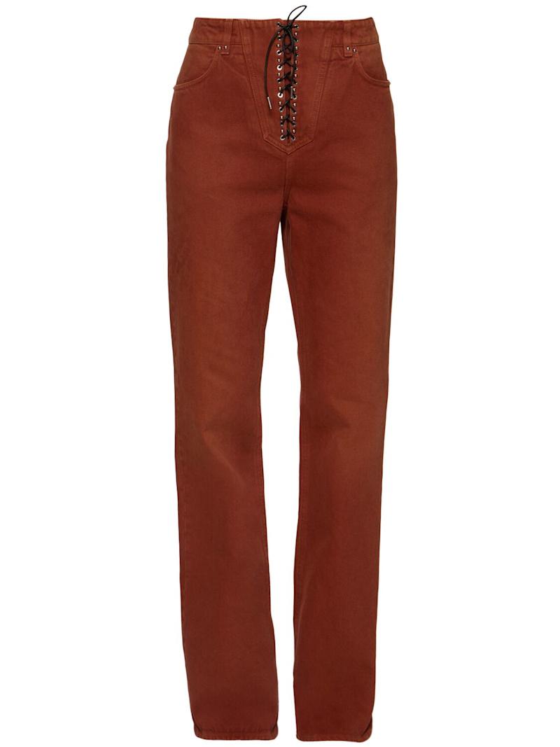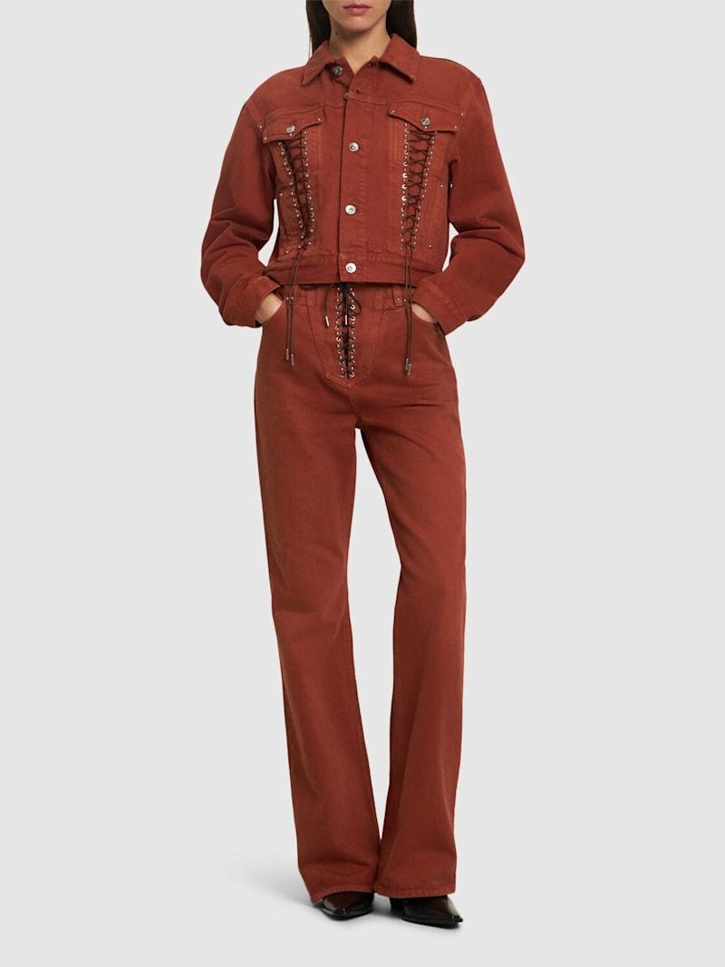高腰棉质喇叭牛仔裤 - 棕色 - 女士 - Rabanne - 正面系带开合.