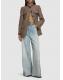 高腰棉质喇叭牛仔裤 - 浅蓝色 - 女士 - Chloé - 正面纽扣和隐藏式拉链开合.