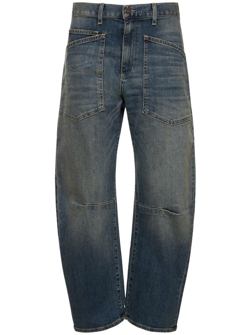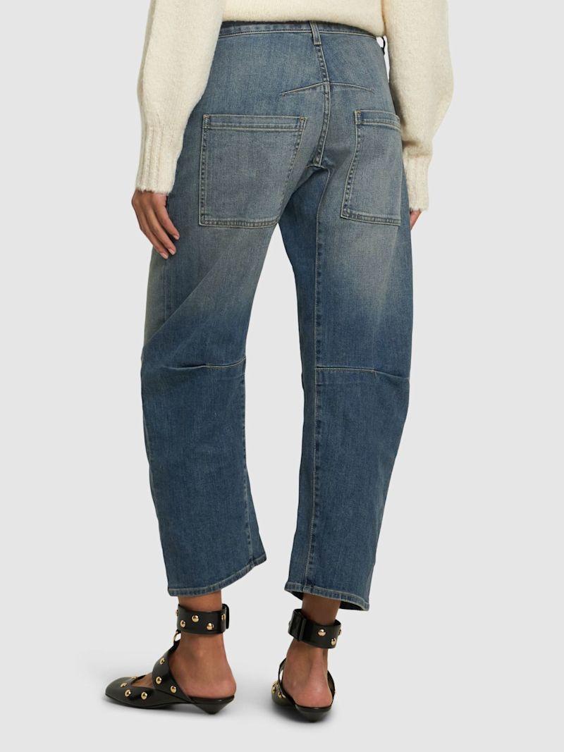 Shon Slit棉质牛仔裤 - 蓝色 - 女士 - Nili Lotan - 正面纽扣和隐藏式拉链开合.