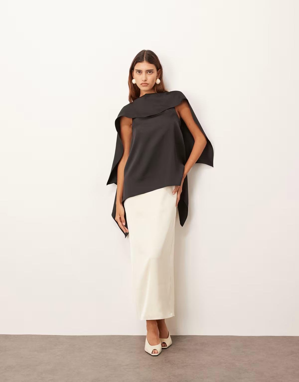ARRANGE scarf neck square cut column midi dress in mono colourblock