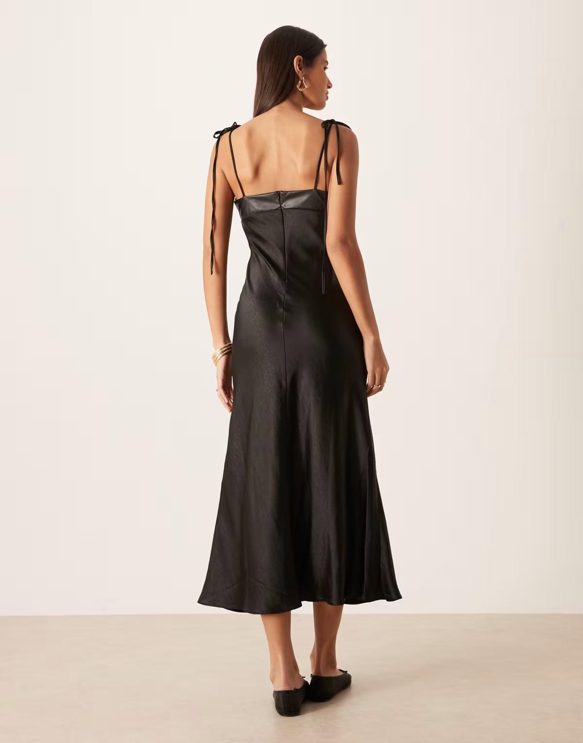 ASOS DESIGN hybrid satin cami slip midi dress with pu bust in black