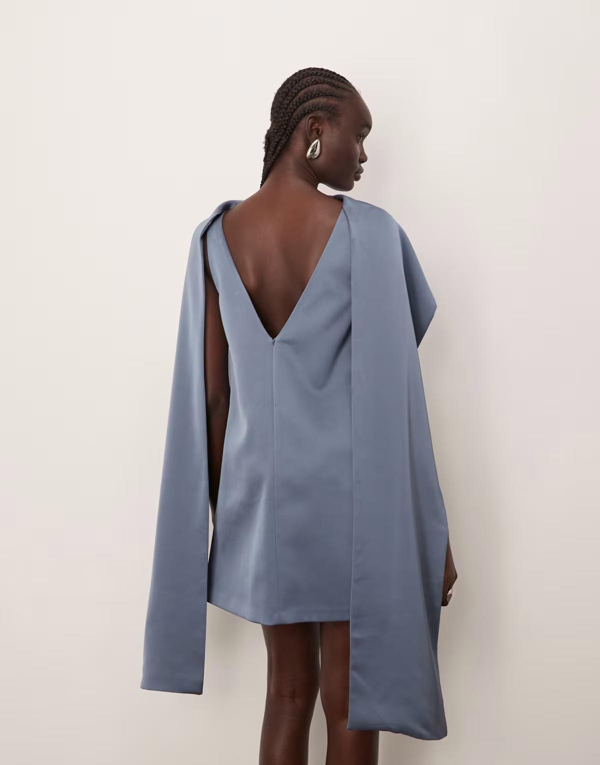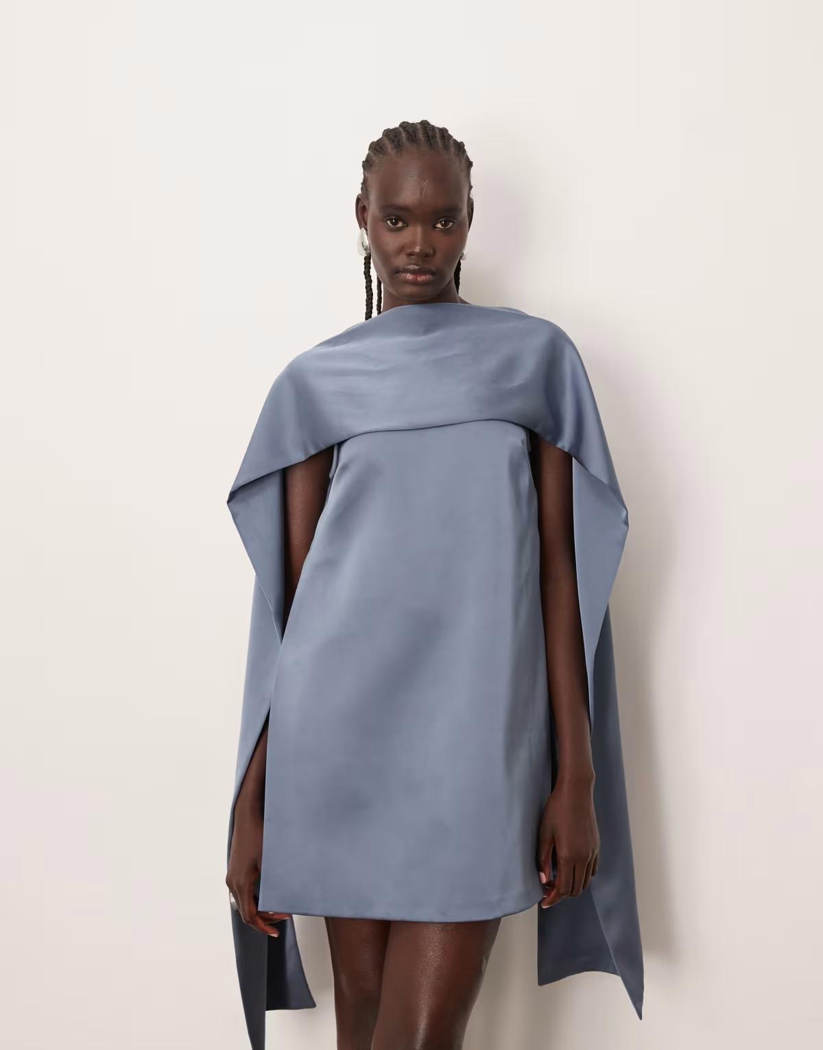 ARRANGE clean scarf neck shift structured mini dress in dusky blue