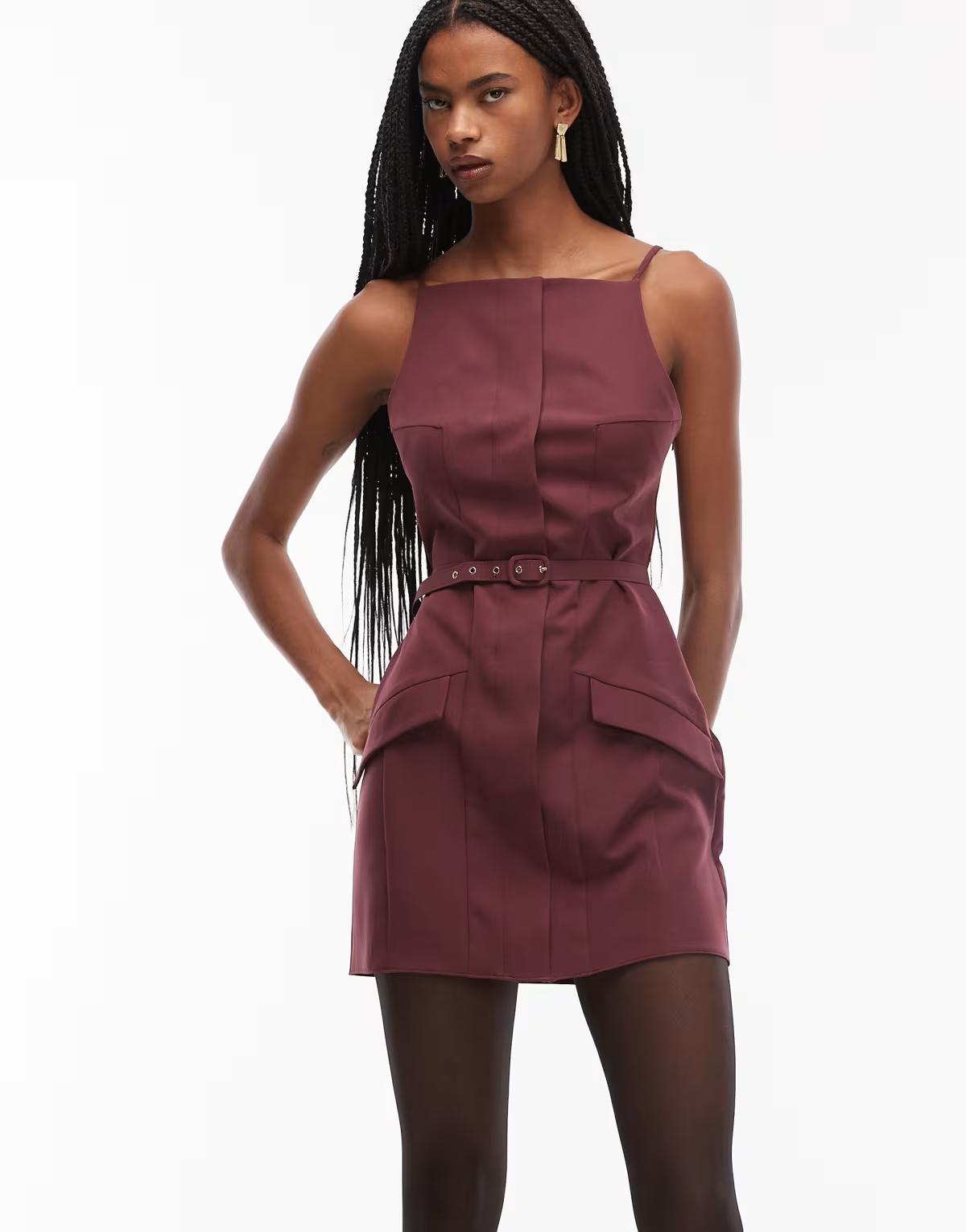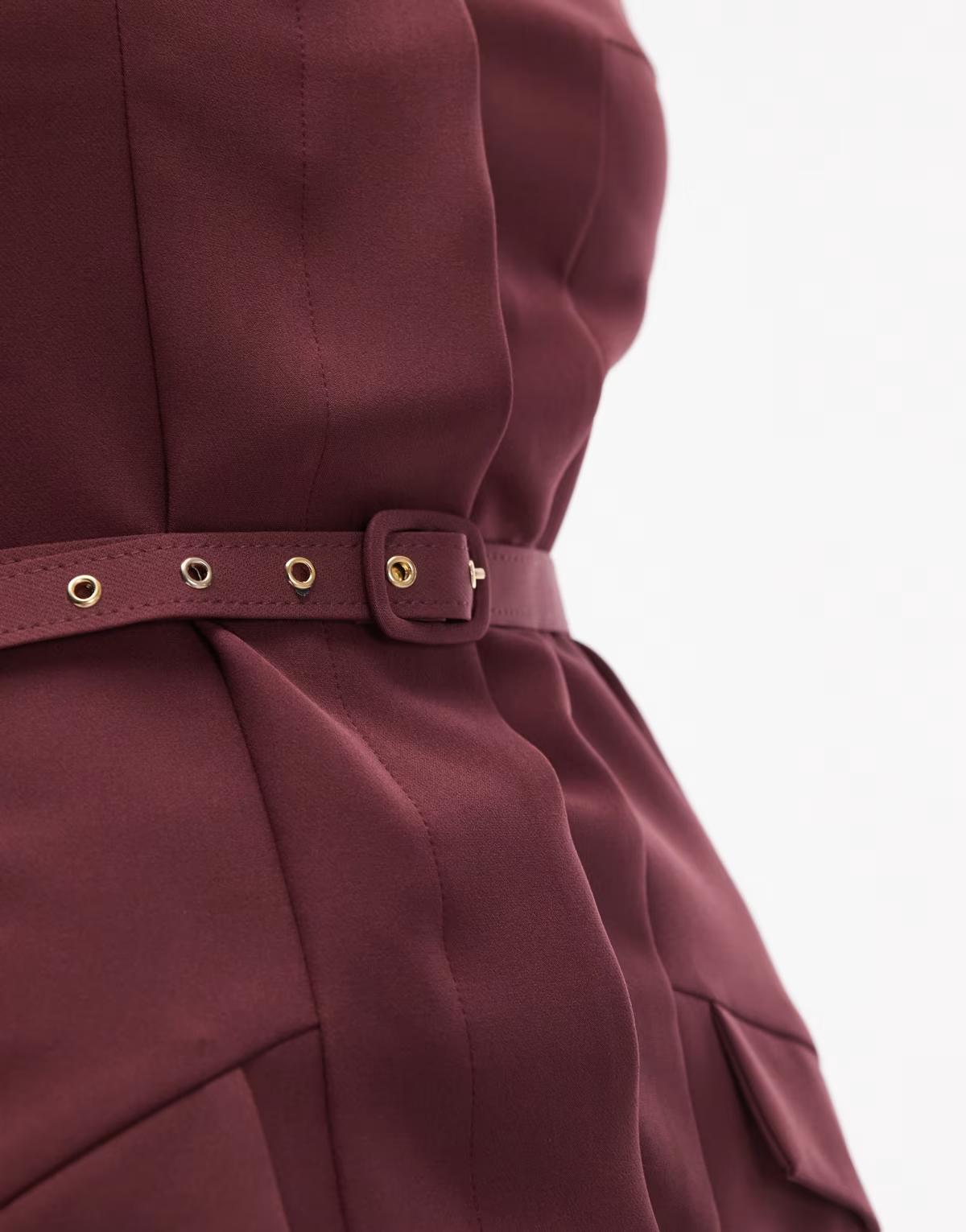ASOS DESIGN slash neck belted mini dress in mulberry