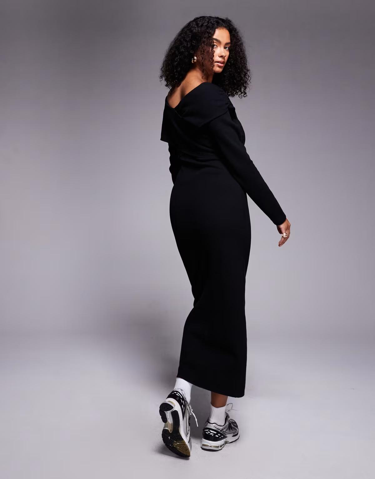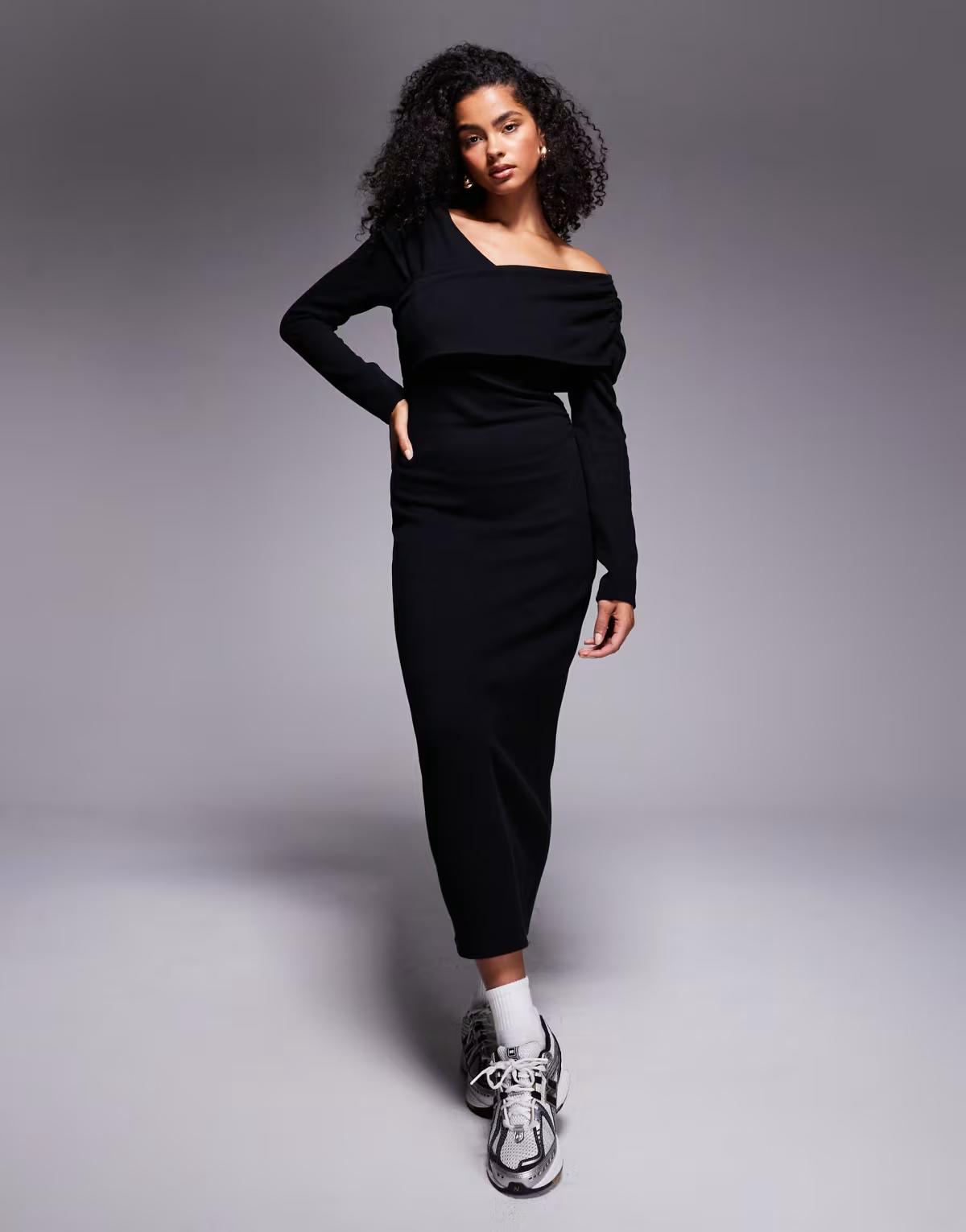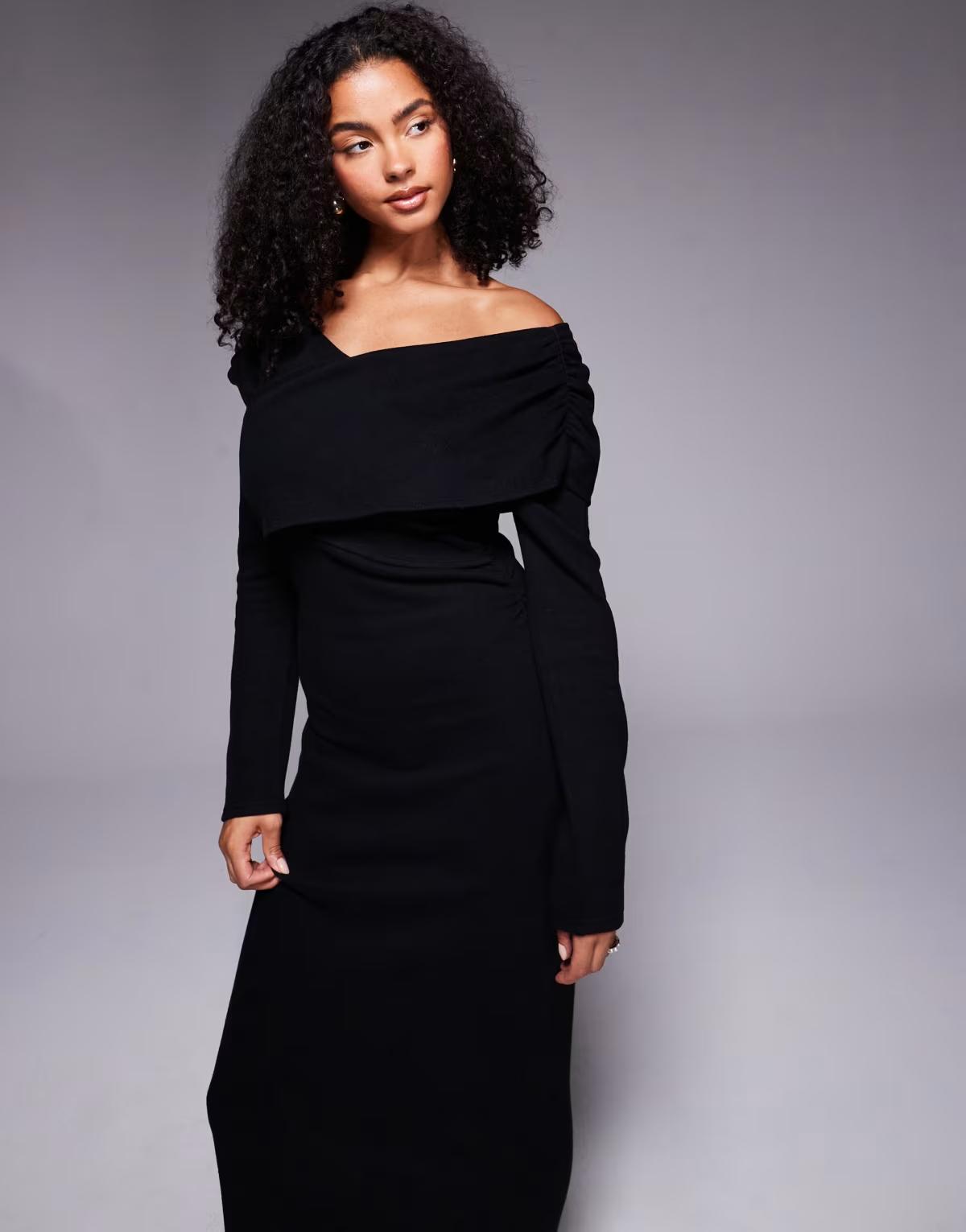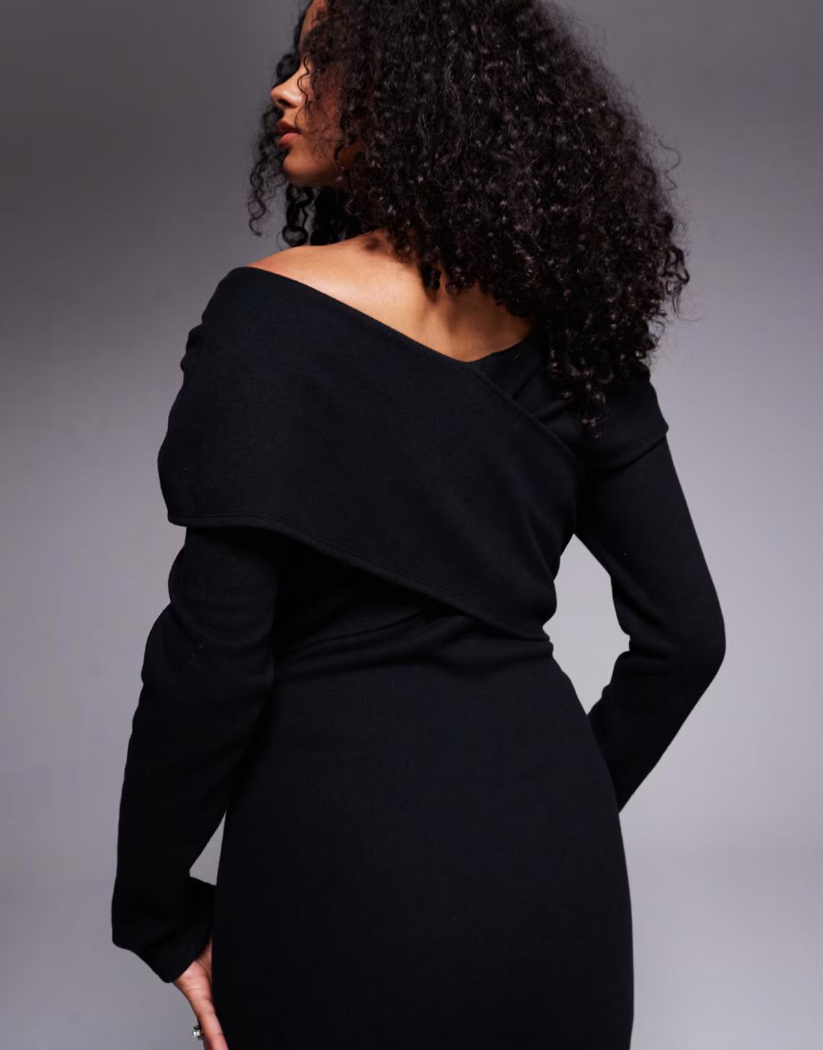 ASOS DESIGN supersoft wrap front midi dress in black