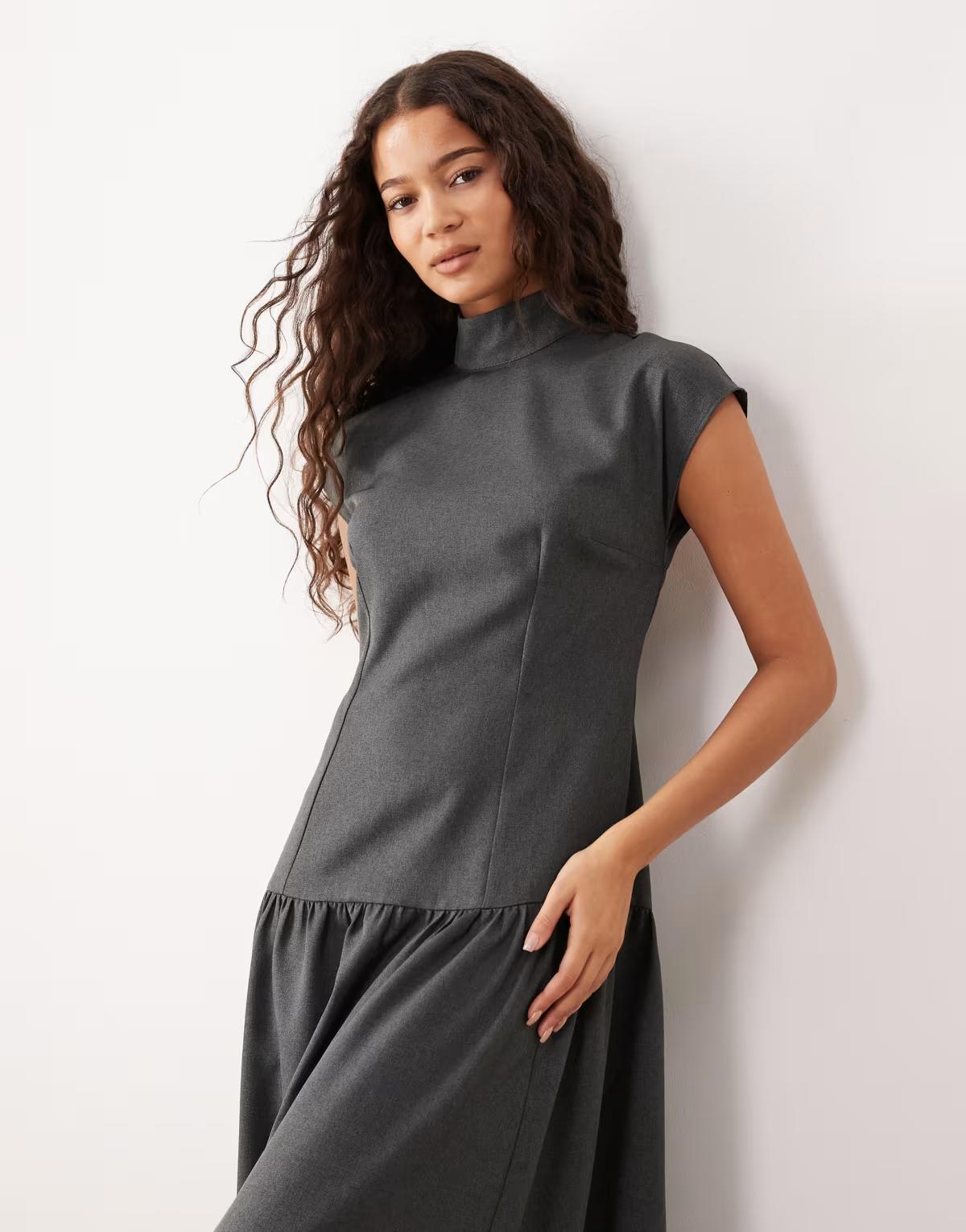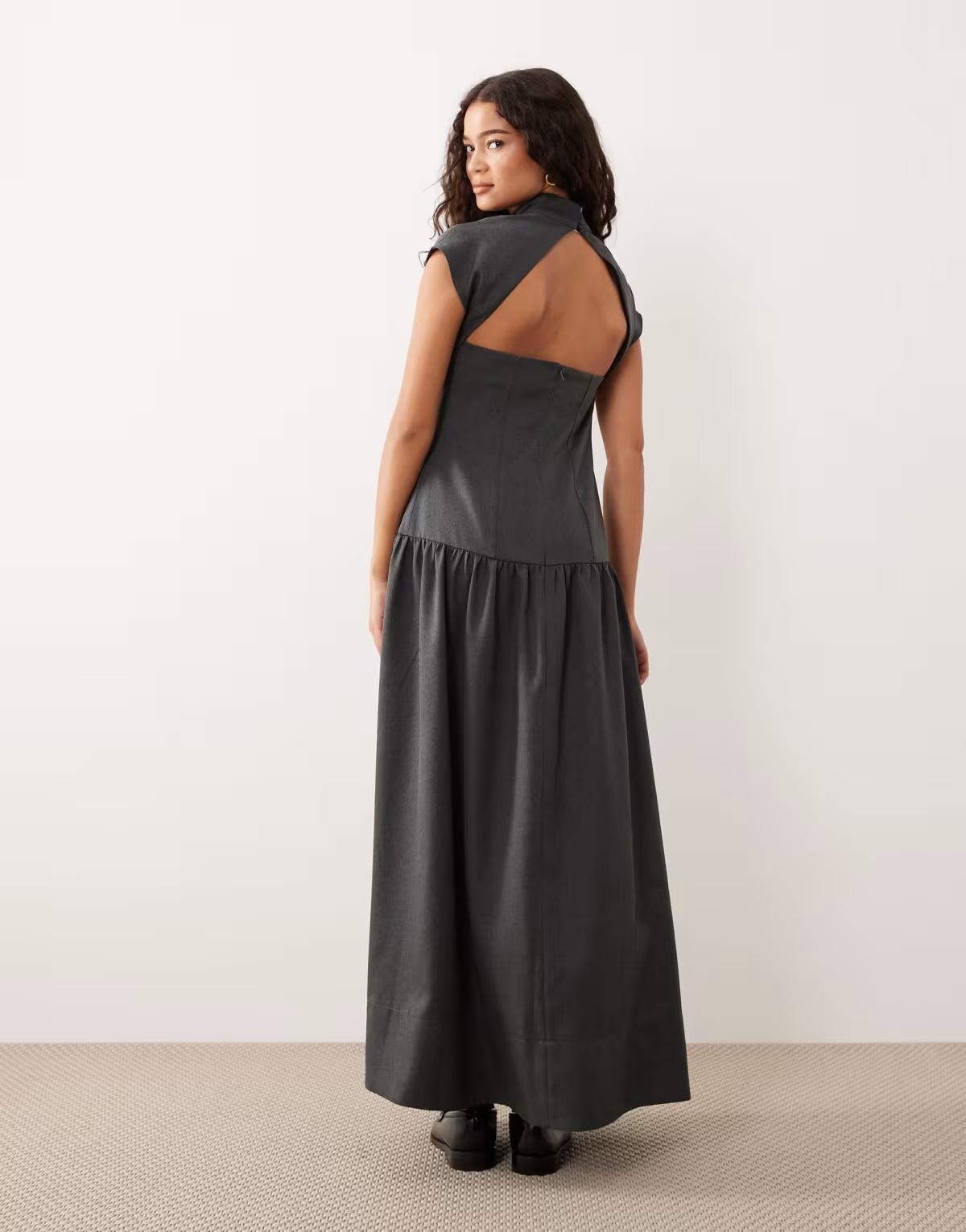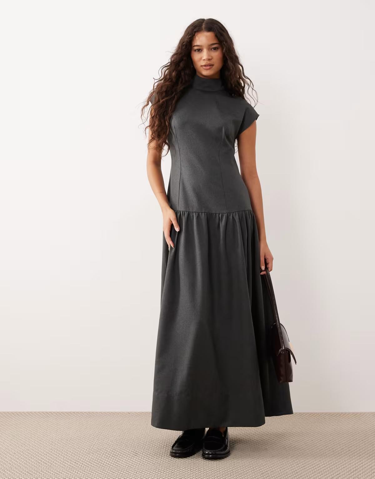 ASOS DESIGN high neck drop waist maxi dress in grey