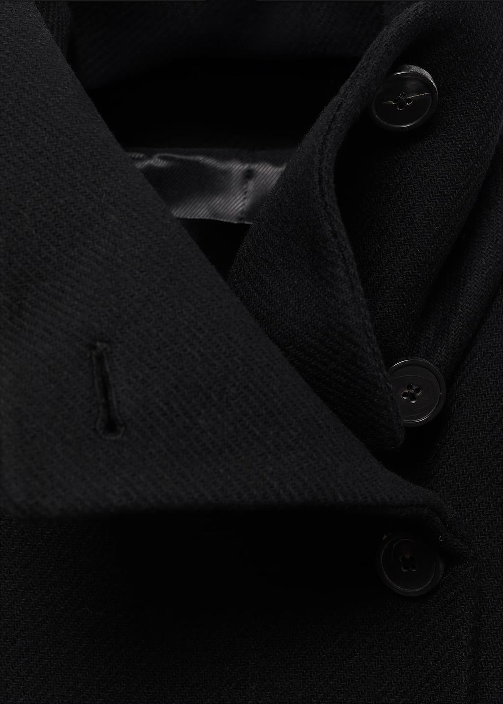 Confeccionado en tejido de lana virgen Manteco, este diseño largo y recto presenta un cuello chimenea con cierre de botones. Incluye manga larga, trabillas y cinturón tipo batín. Cierre delantero de botón y forro interior. Disponible Plus