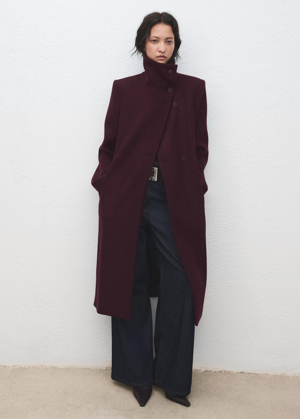 Confeccionado en tejido de lana virgen Manteco, este diseño largo y recto presenta un cuello chimenea con cierre de botones. Incluye manga larga, trabillas y cinturón tipo batín. Cierre delantero de botón y forro interior. Disponible Plus