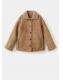 Con efecto piel ante, este diseño recto presenta un cuello camisero de borreguito y manga larga. Incluye dos bolsillos laterales y cierre delantero con botones. El forro interior también es de borreguito