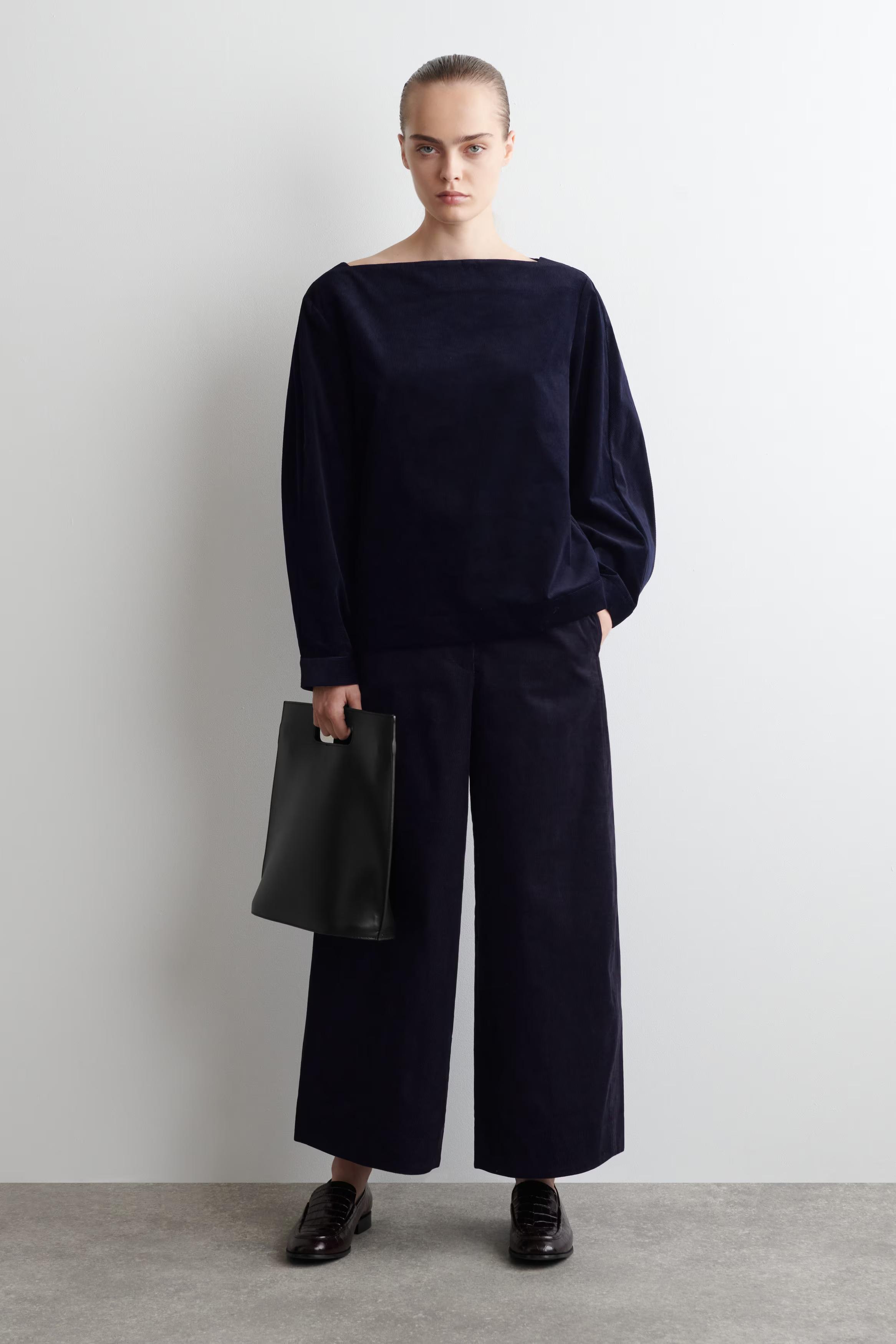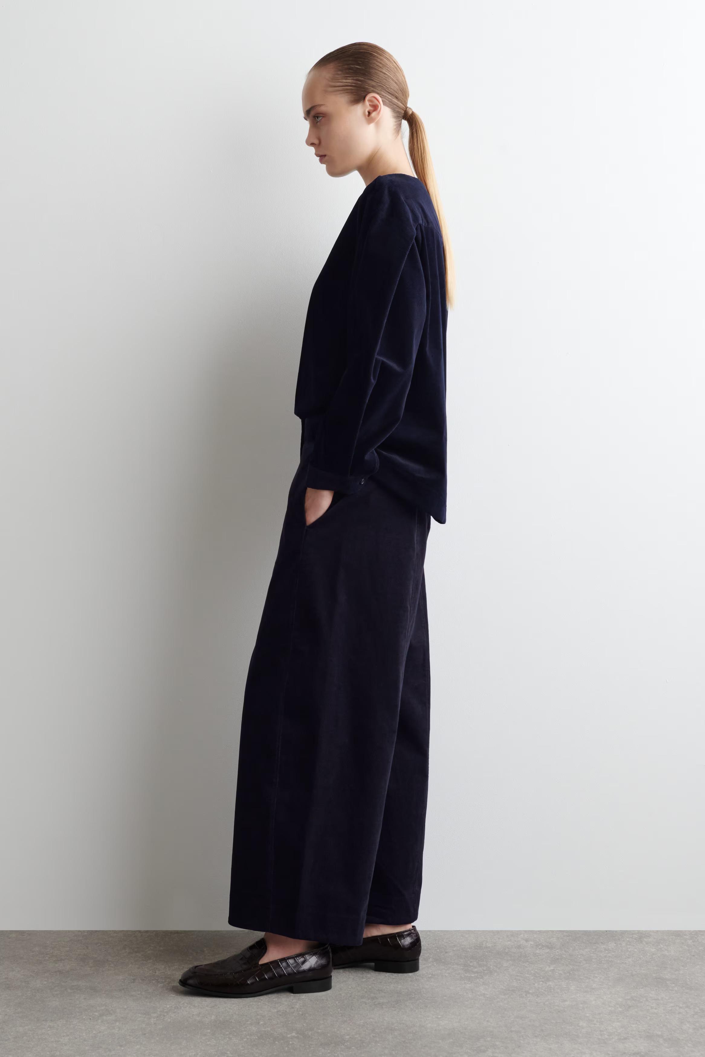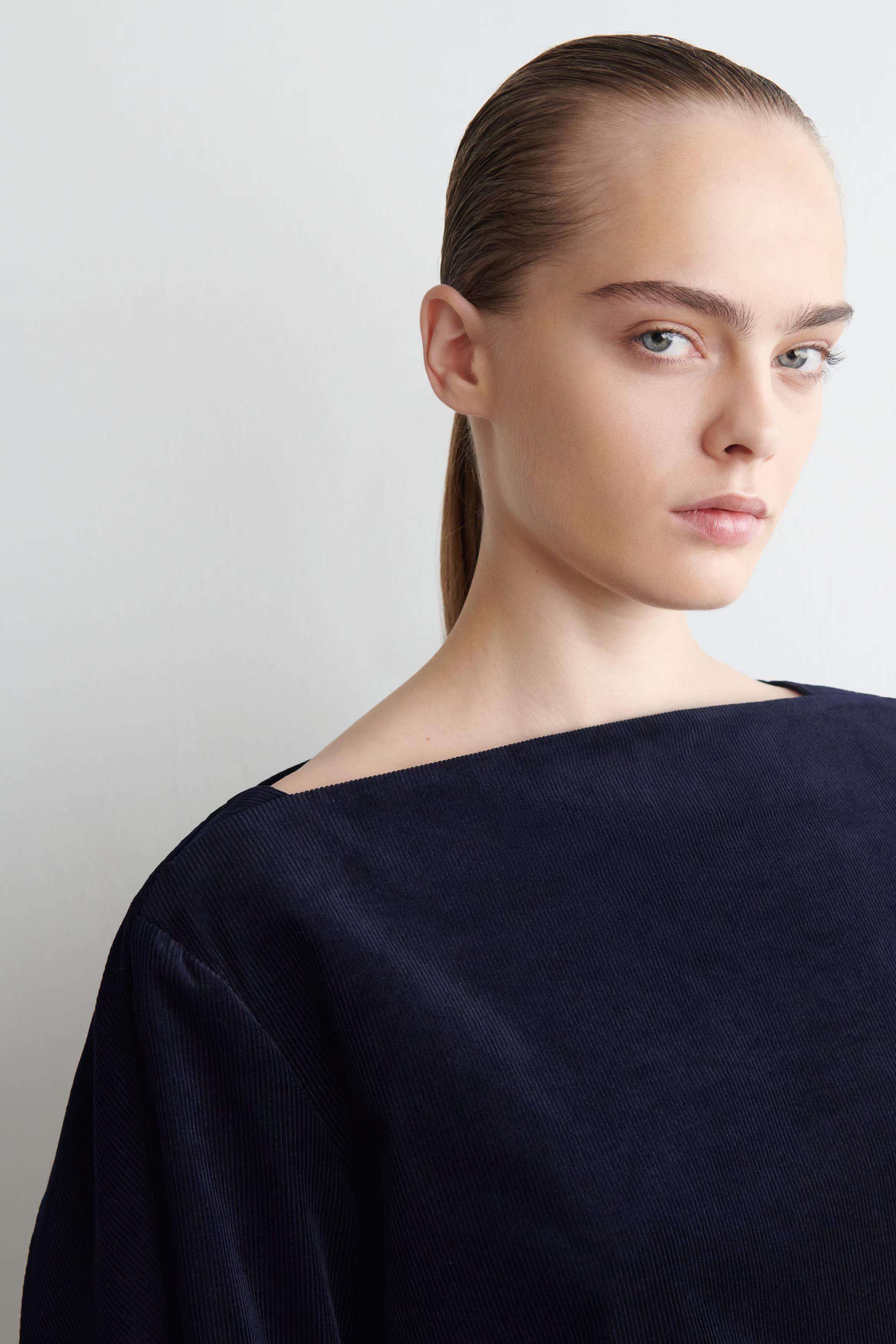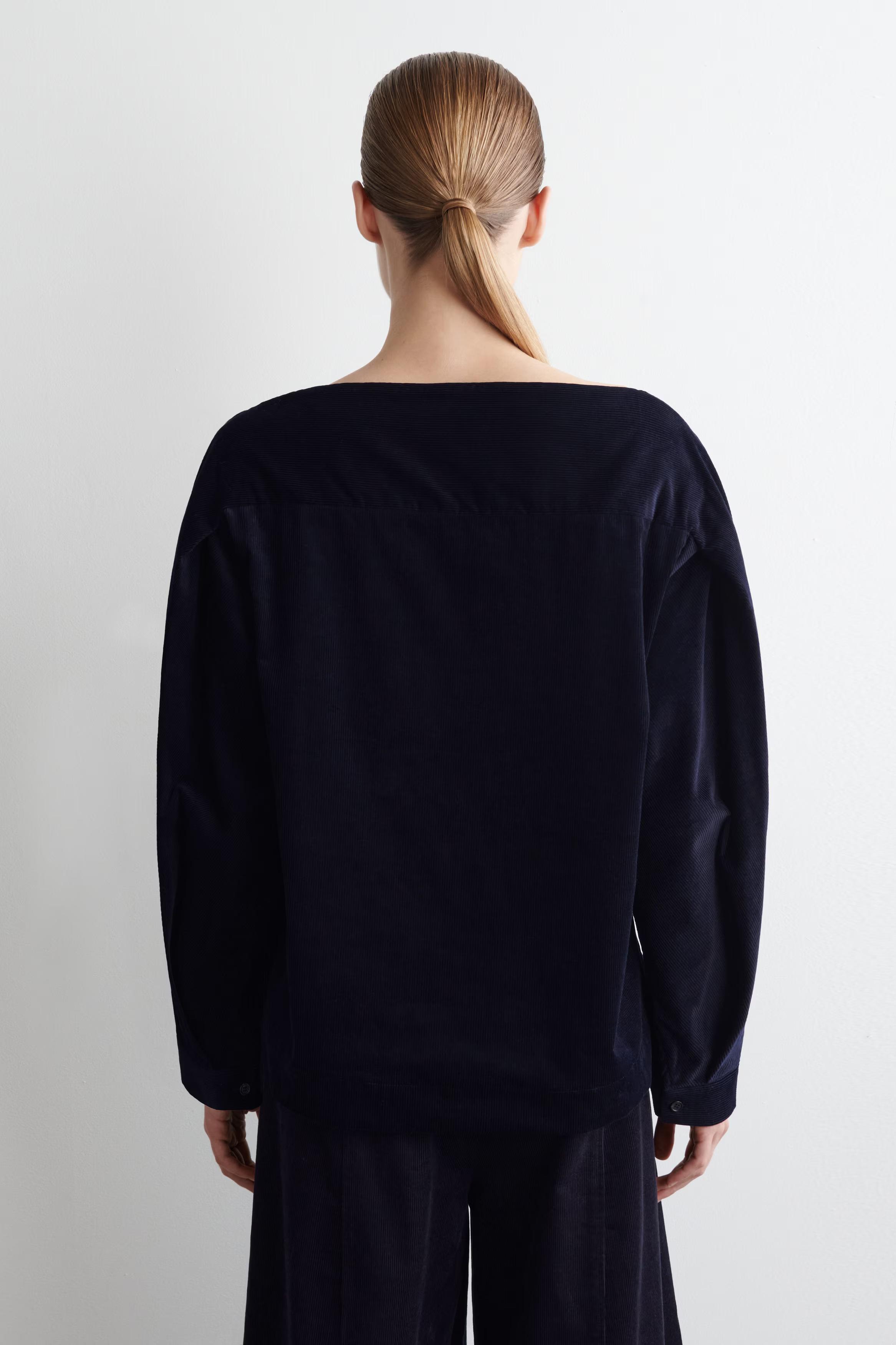 Imbuing classic silhouettes with unexpected details is a pillar of the COS design language. This refined piece is crafted from tactile cotton-corduroy and finished with a straight, elongated neckline that frames the d\u0026eacute;colletage. It's finished with tonal buttons at the cuffs.\u0026nbsp;Regular fit\u0026nbsp;Shell: 100% Cotton. Excluding trims / Machine wash\u0026nbsp;Back length of size EU 36 is 62.3cm / Model wears a size EU 36
