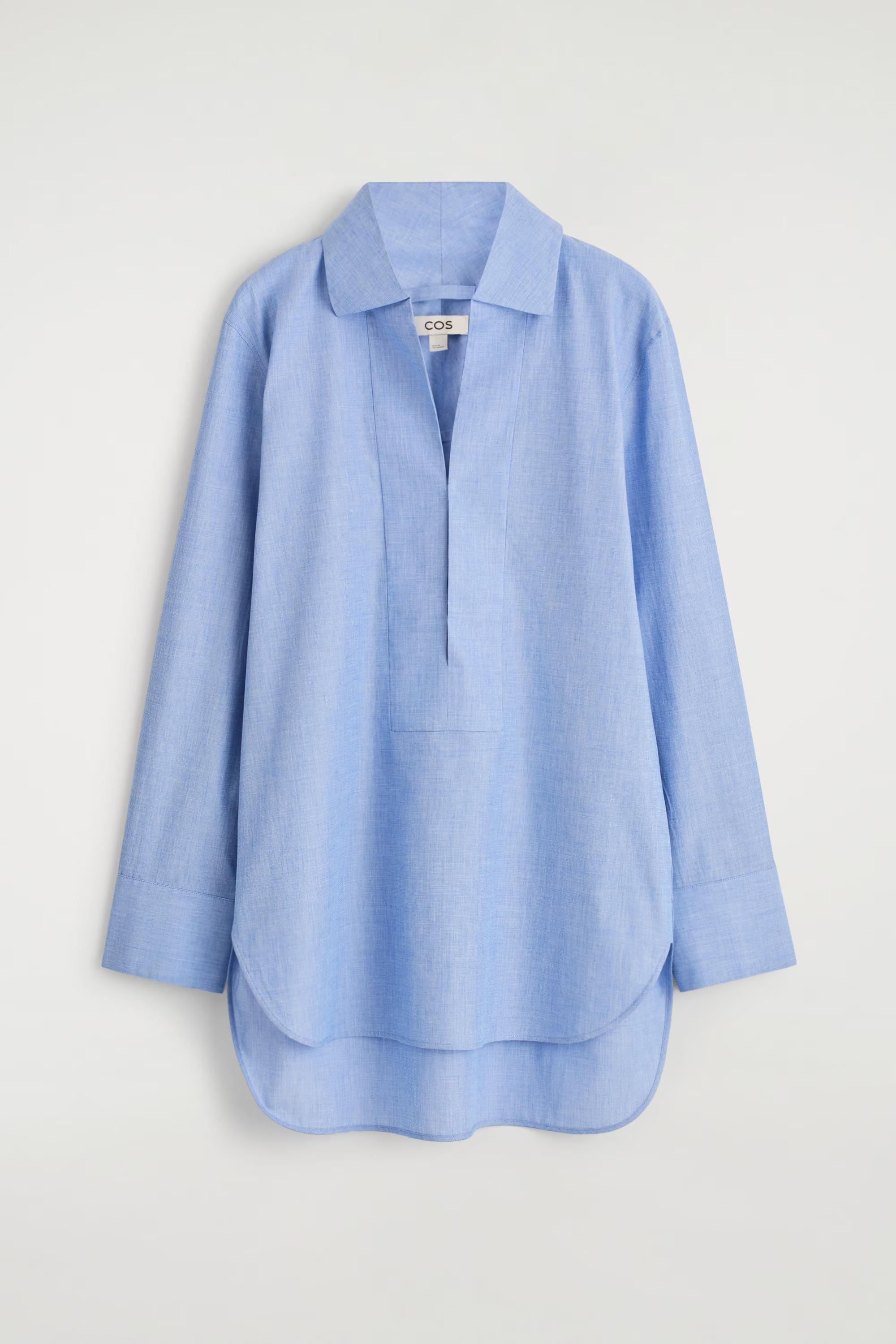 Distinctive, architectural, precise \u0026ndash; the tailored shirt is a cornerstone of the COS collection. This tuxedo-inspired piece is made from fil-\u0026agrave;-fil cotton selected for its rich texture and features a bib-front detail, mother-of-pearl buttons and an exaggerated folded collar that was specially designed in our London atelier.\u0026nbsp;Relaxed fitButton closure\u0026nbsp;Shell: 100% Cotton. Excluding trims / Machine wash\u0026nbsp;Back length of size EU 36 is 89.7cm / Model wears a size EU 36
