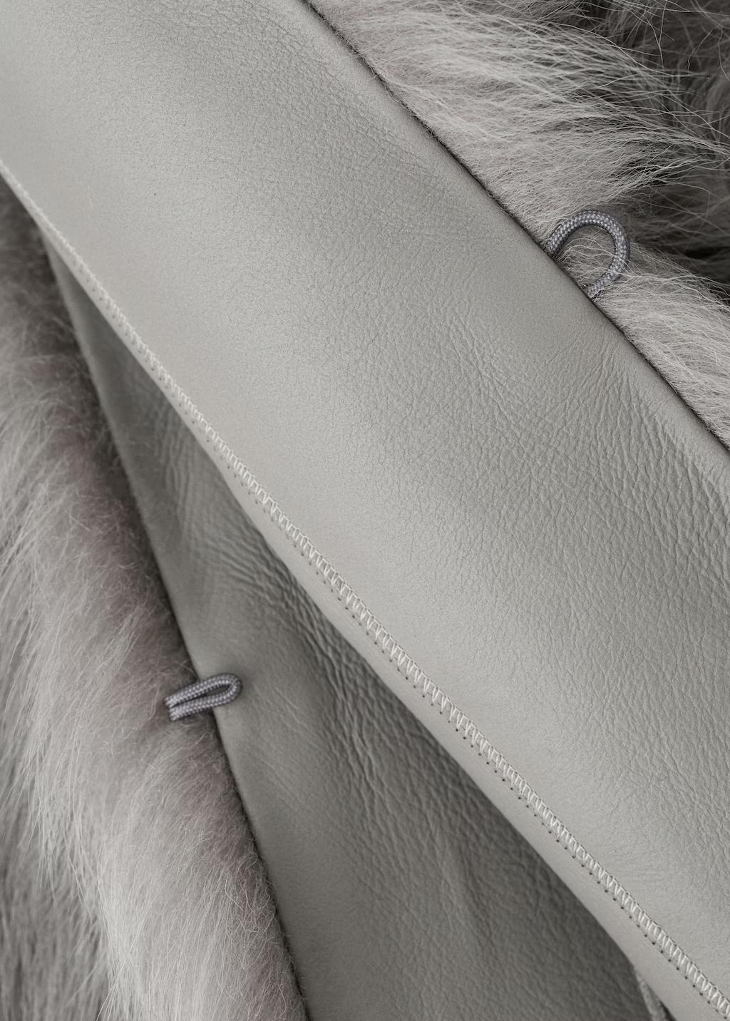Confeccionado en 100% piel bovino con pelo, este abrigo presenta un diseño recto y reversible. Incluye cuello redondo, manga larga y dos bolsillos laterales. El cierre delantero con botones completa su estilo funcional