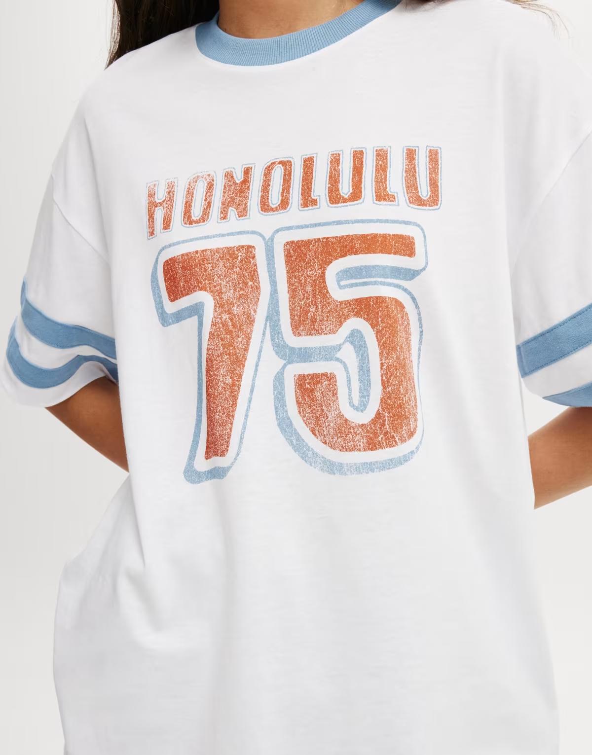 Text and graphic print on front