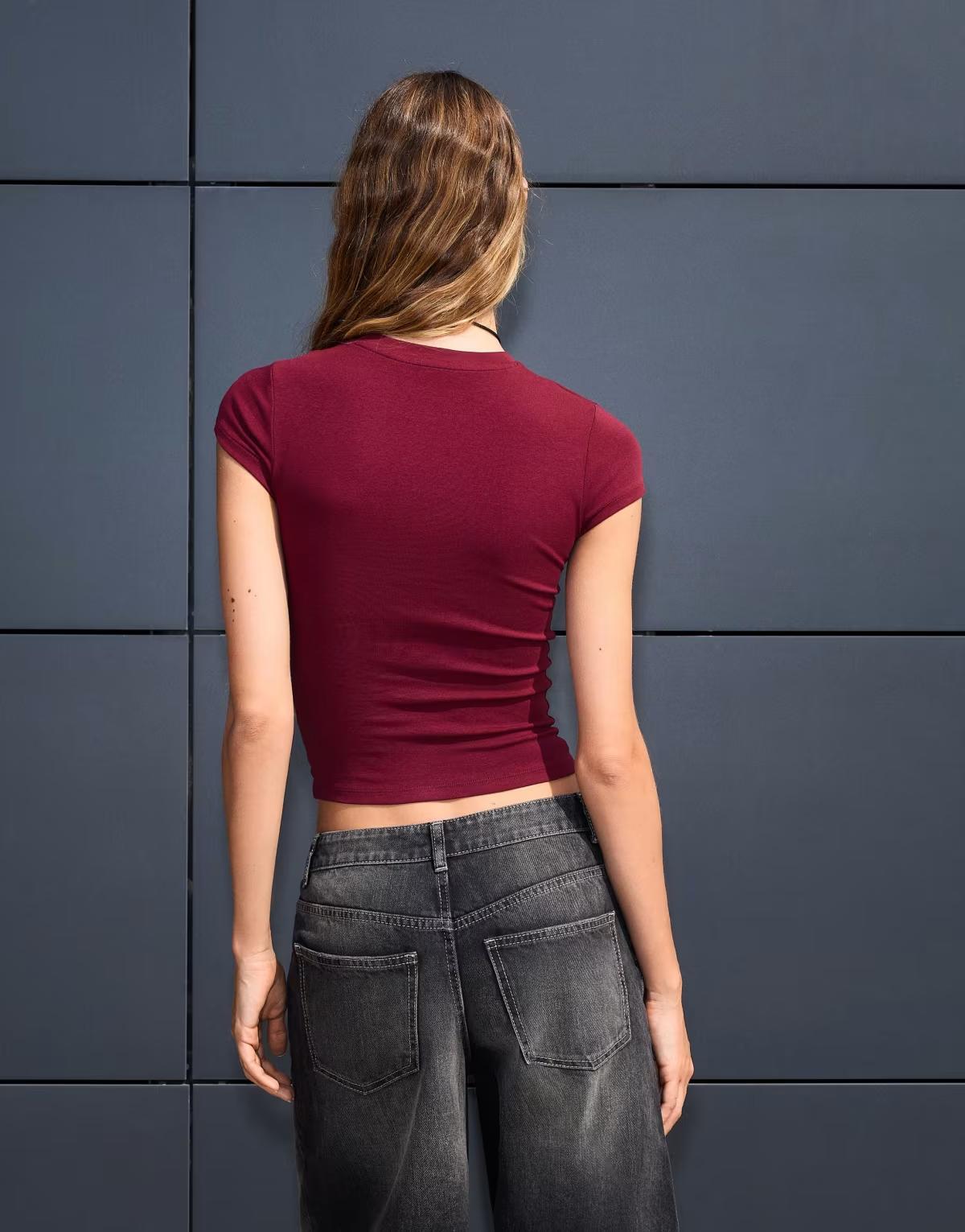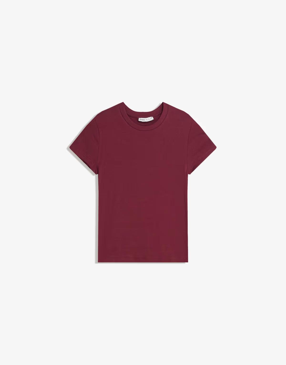 Bershka Short sleeve crew neck t-shirt in burgundy