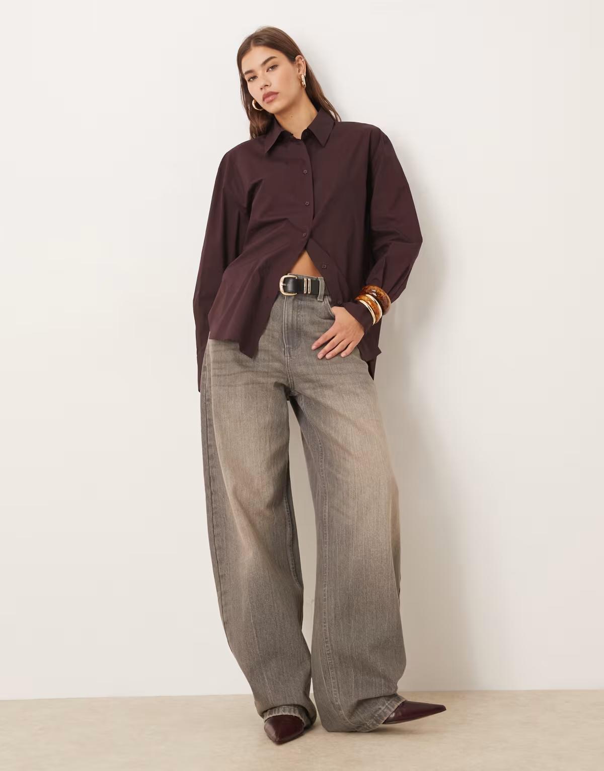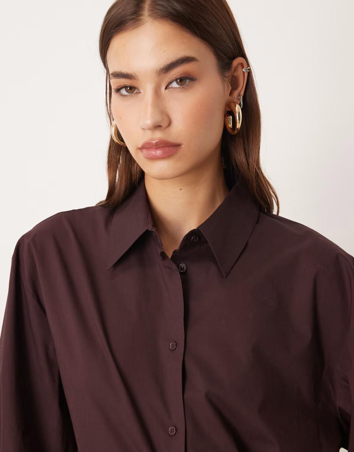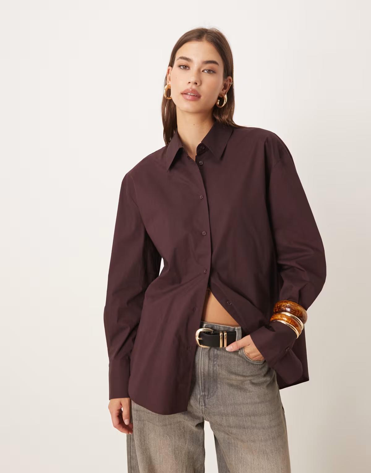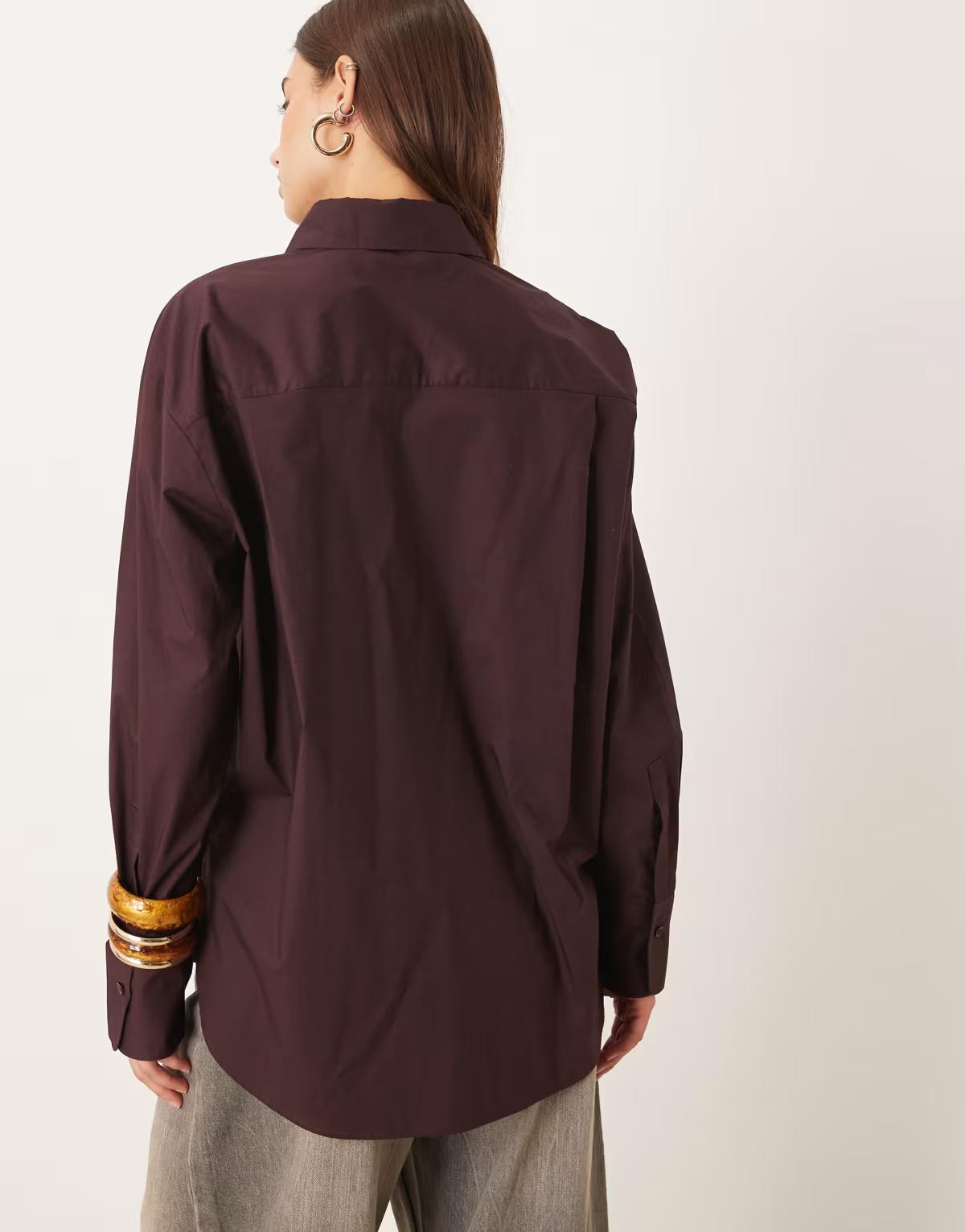 Mango 100% cotton oversized shirt in burgundy