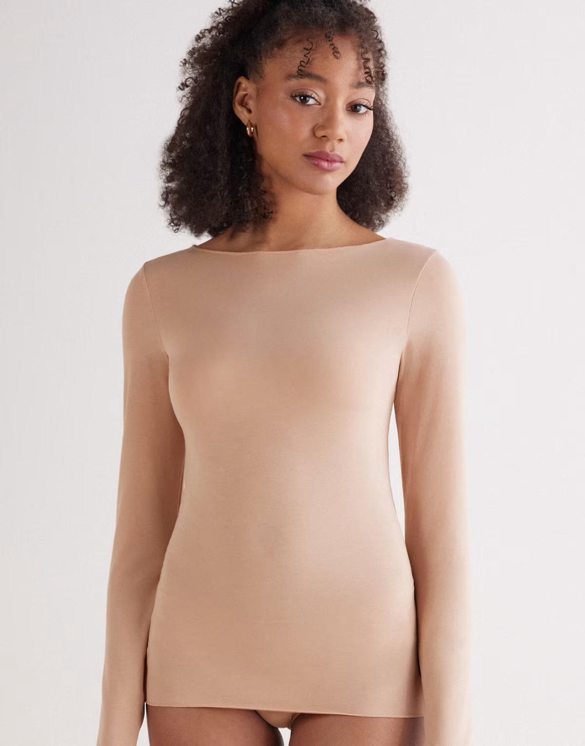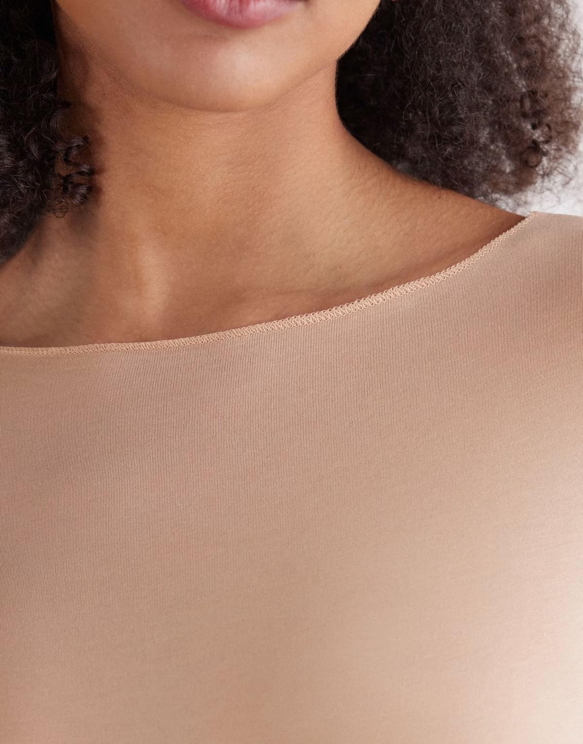 Intimissimi Boat-neck ultralight cotton top in honey soft beige