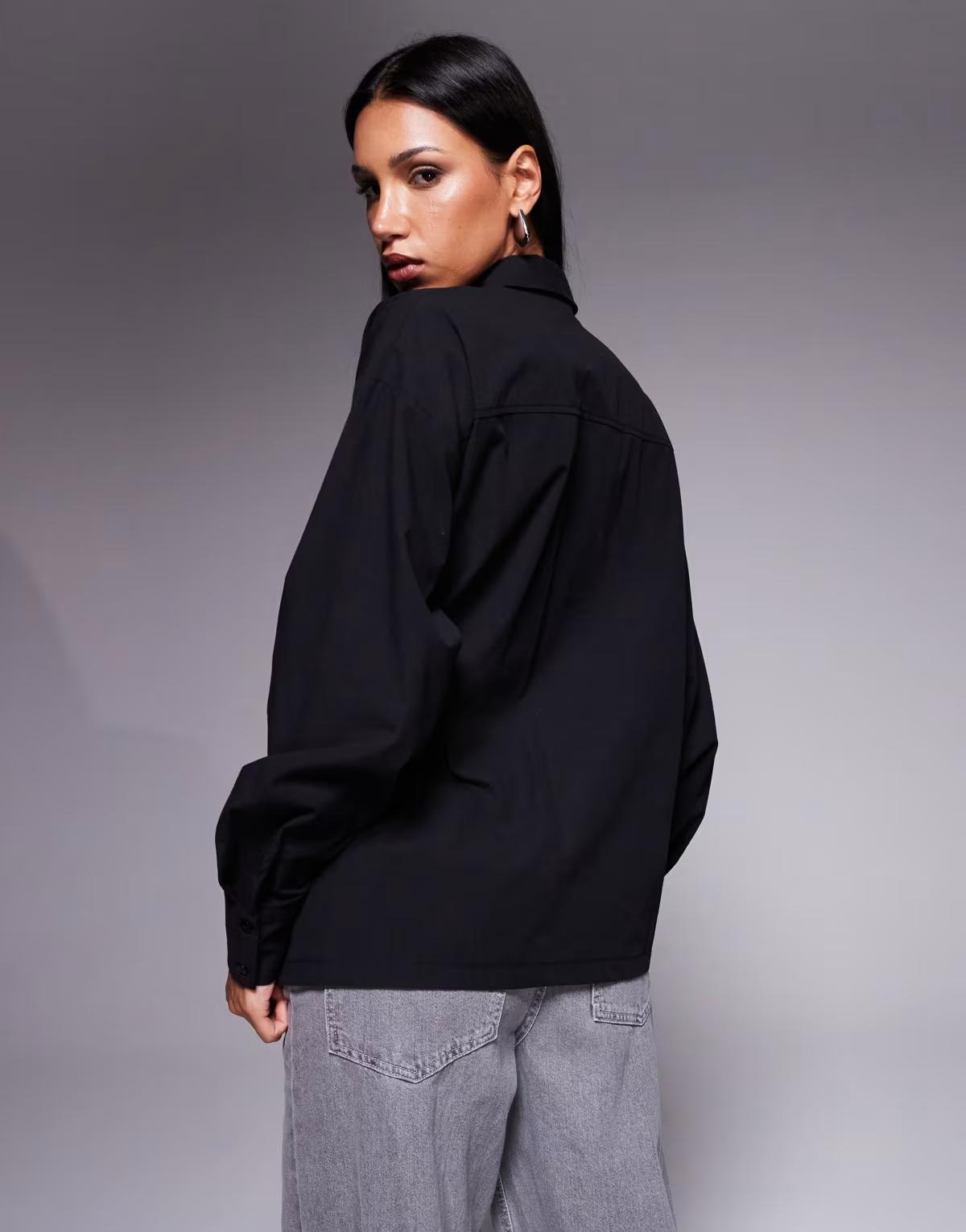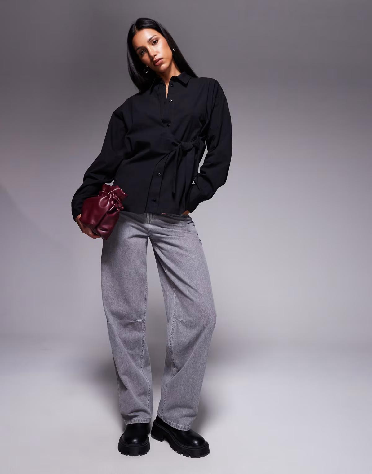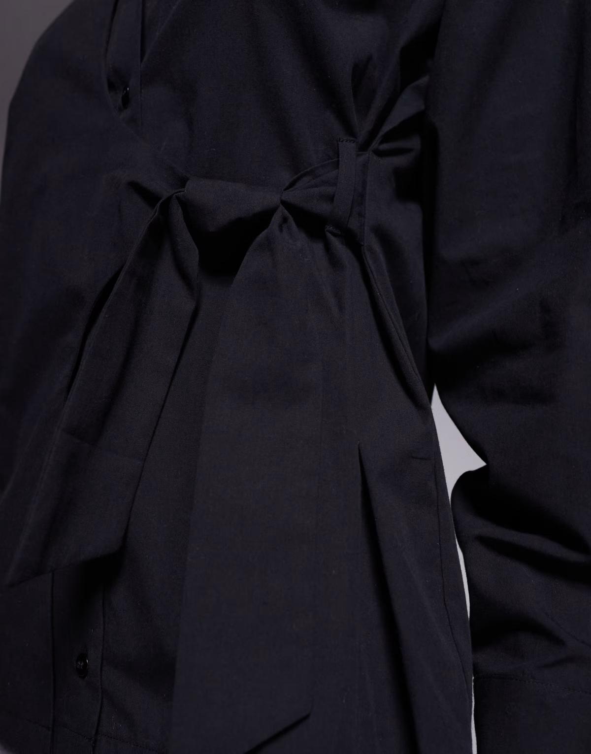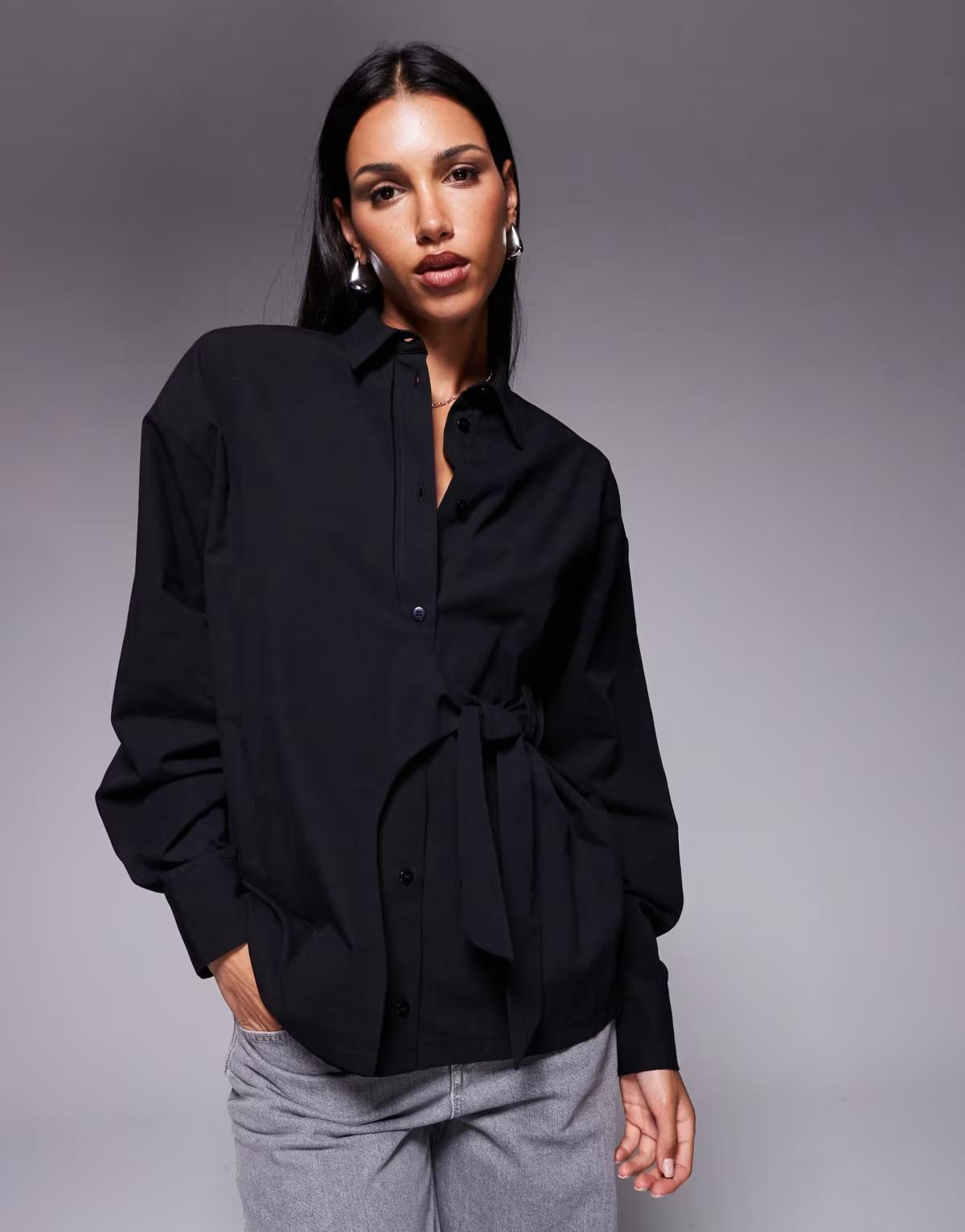 ASOS DESIGN cinch overwrap bow detail oversized shirt in black