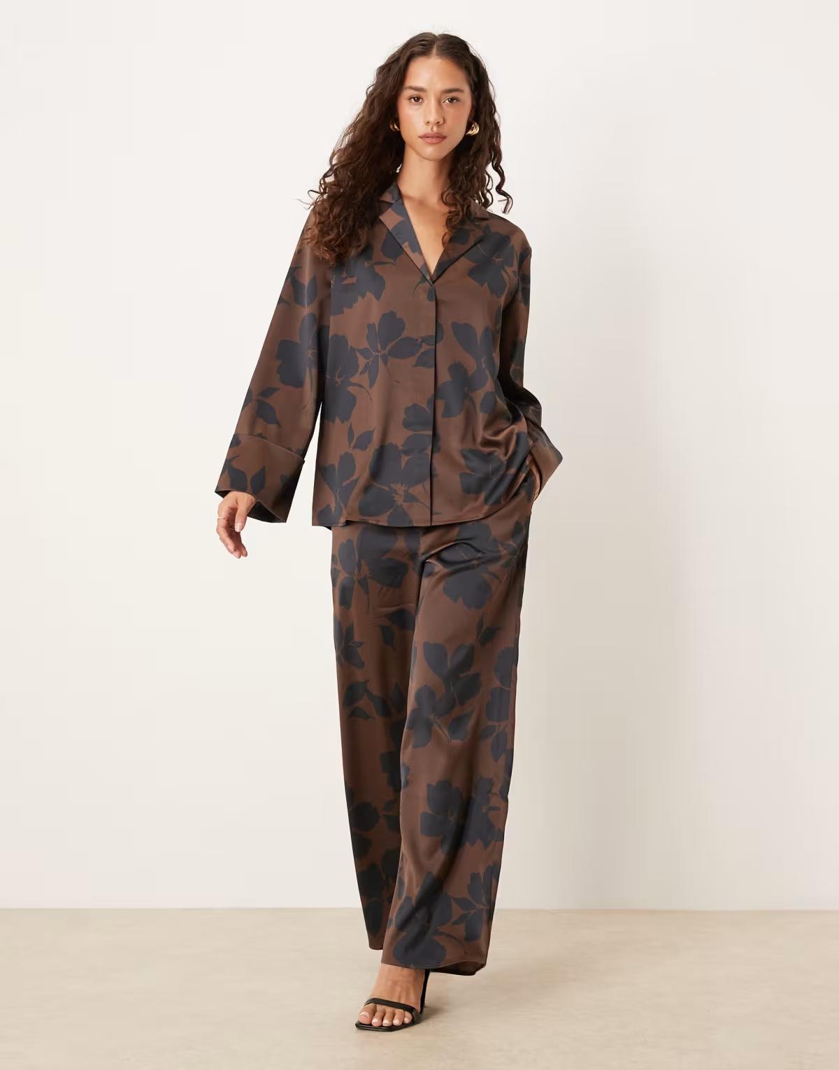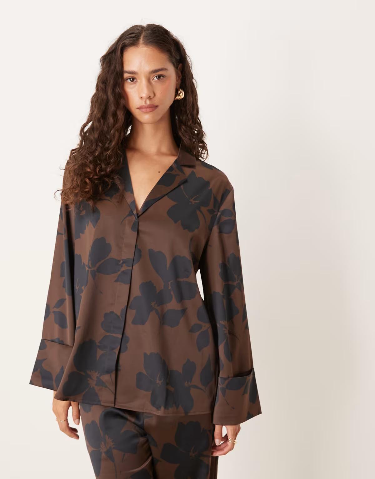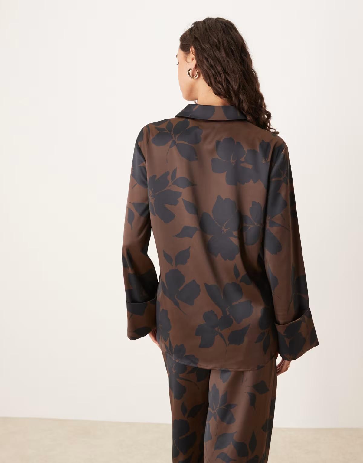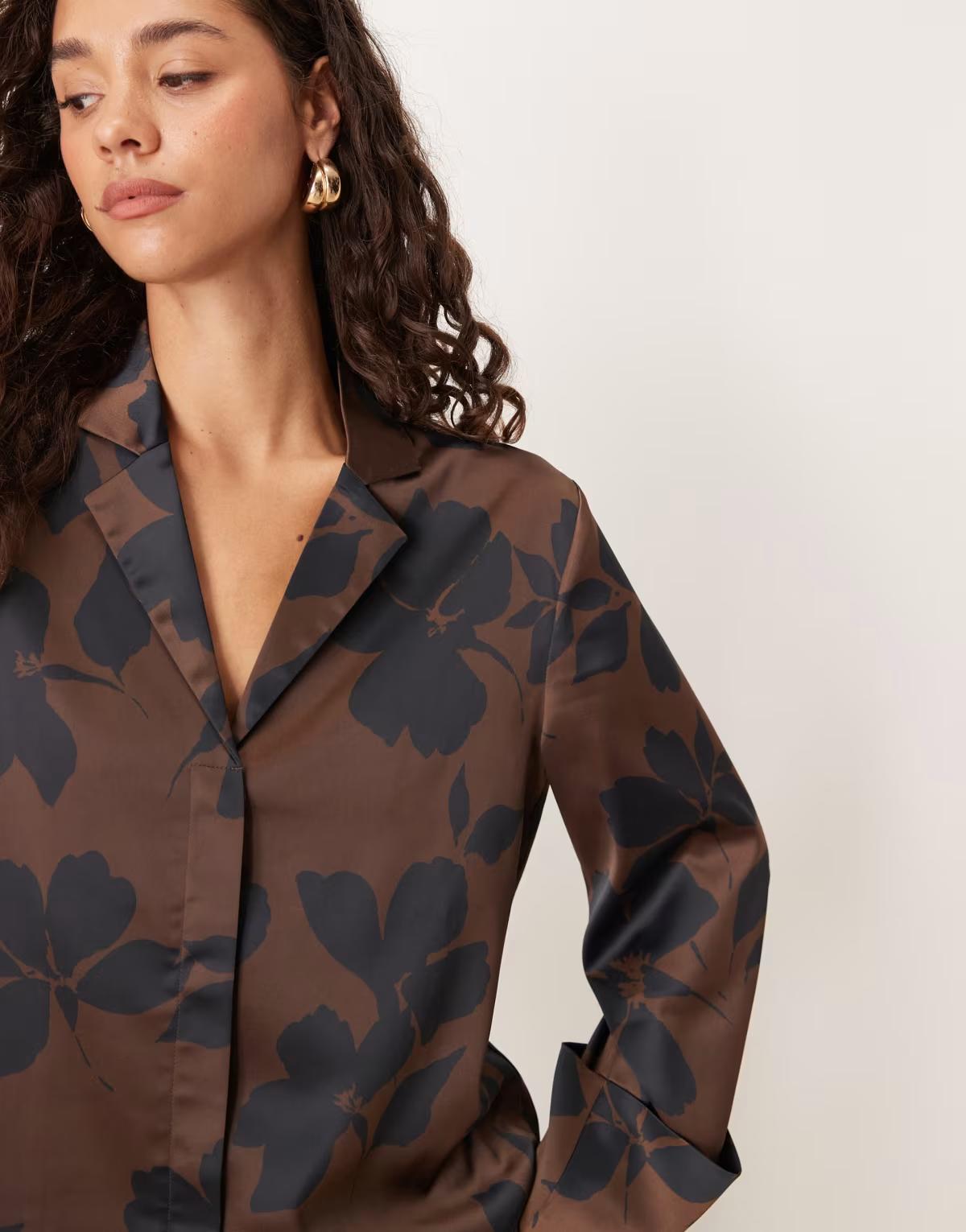 Pretty Lavish oversized shirt co-ord in chocolate abstract print