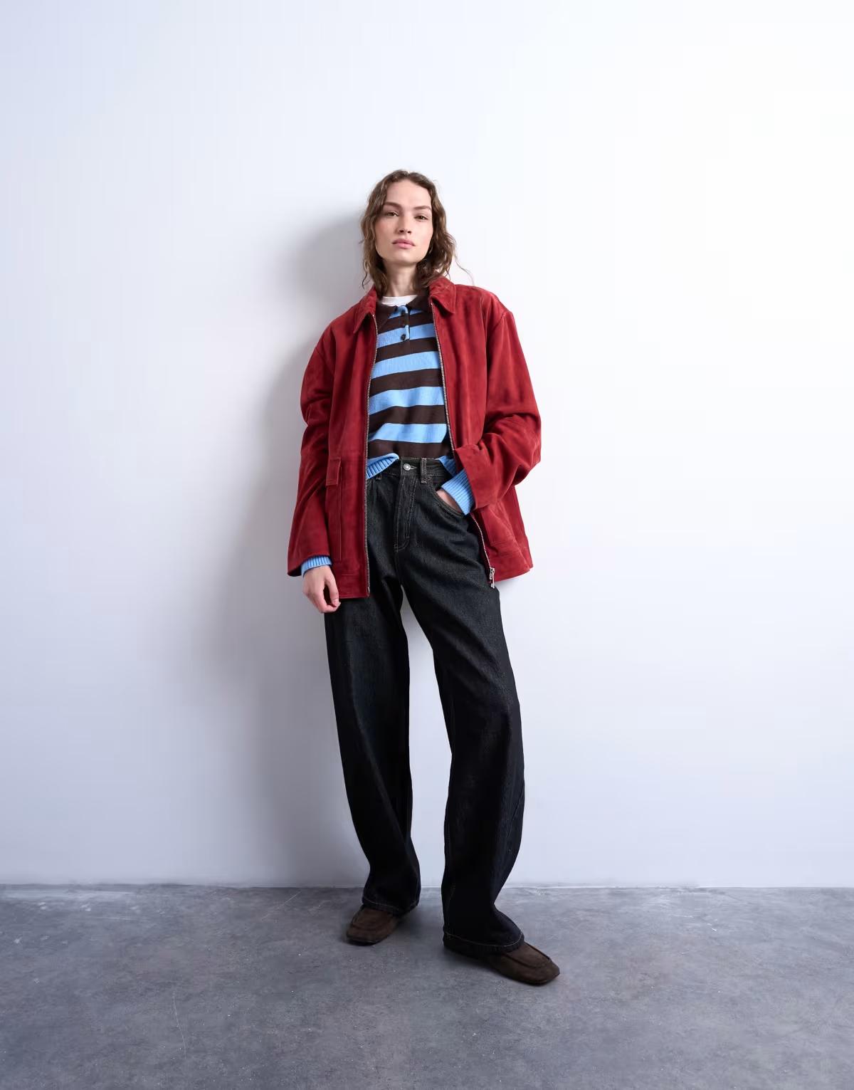 Specialist dry clean onlyLining: 100% Polyester, Shell: 100% Leather.Topshop is entering a new era. Retaining its fashion authority and the very best of its heritage, while celebrating iconic styles such as the Jamie and Joni jean, and embracing the new. With that unique London spirit remaining at the core of the collections, join us on a journey of exploration and discovery. Shop the entire range only at ASOS in petite, maternity, tall and curve edits and expect dresses, tops, tailoring and shoes.Size & FitModel's height: 172cm/5'8Still unsure what size to get? Check out our size guide.