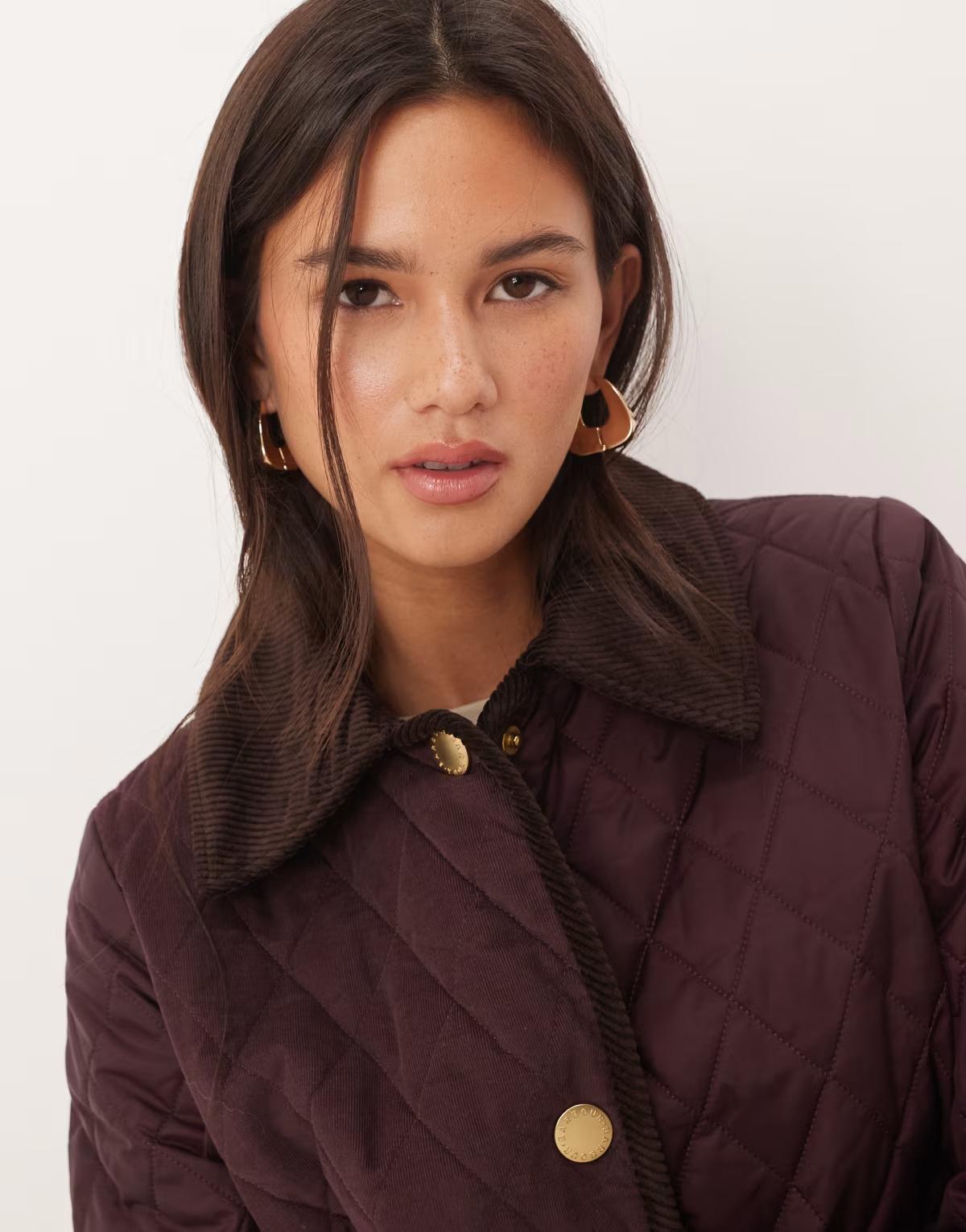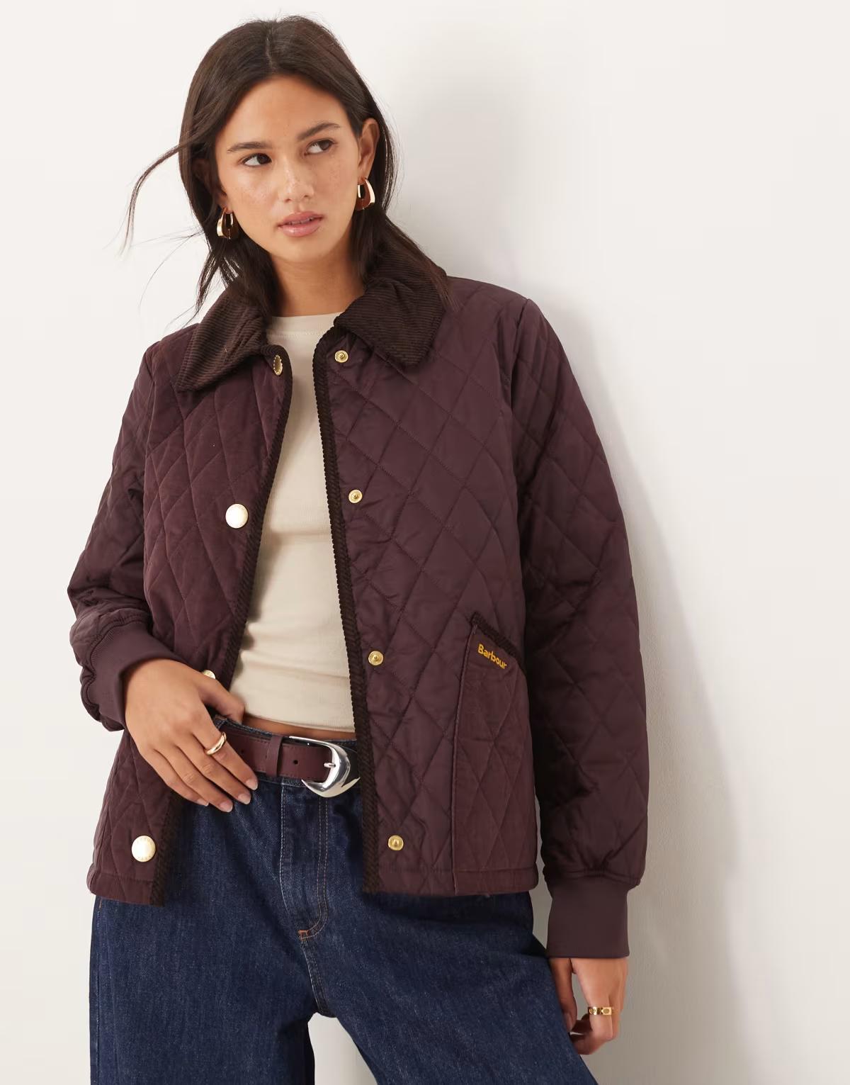 Outer: 100% Polyamide, Inner: 100% Polyester.With a rich heritage dating back to 1894, quintessentially British brand, Barbour have garnered a reputation for quality and durability, across their collection of high performance outerwear. Fusing fashion with functionality, their International range offers a feminine take on the biker jacket, reworking the silhouette with a contemporary nylon and leather finishes in a bold colour palette. Meanwhile the Heritage line champions the brand's signature style with classic quilted jackets sitting alongside the waxed cotton Beadnell.Size & FitModel's height: 168.5cm / 5' 6½''